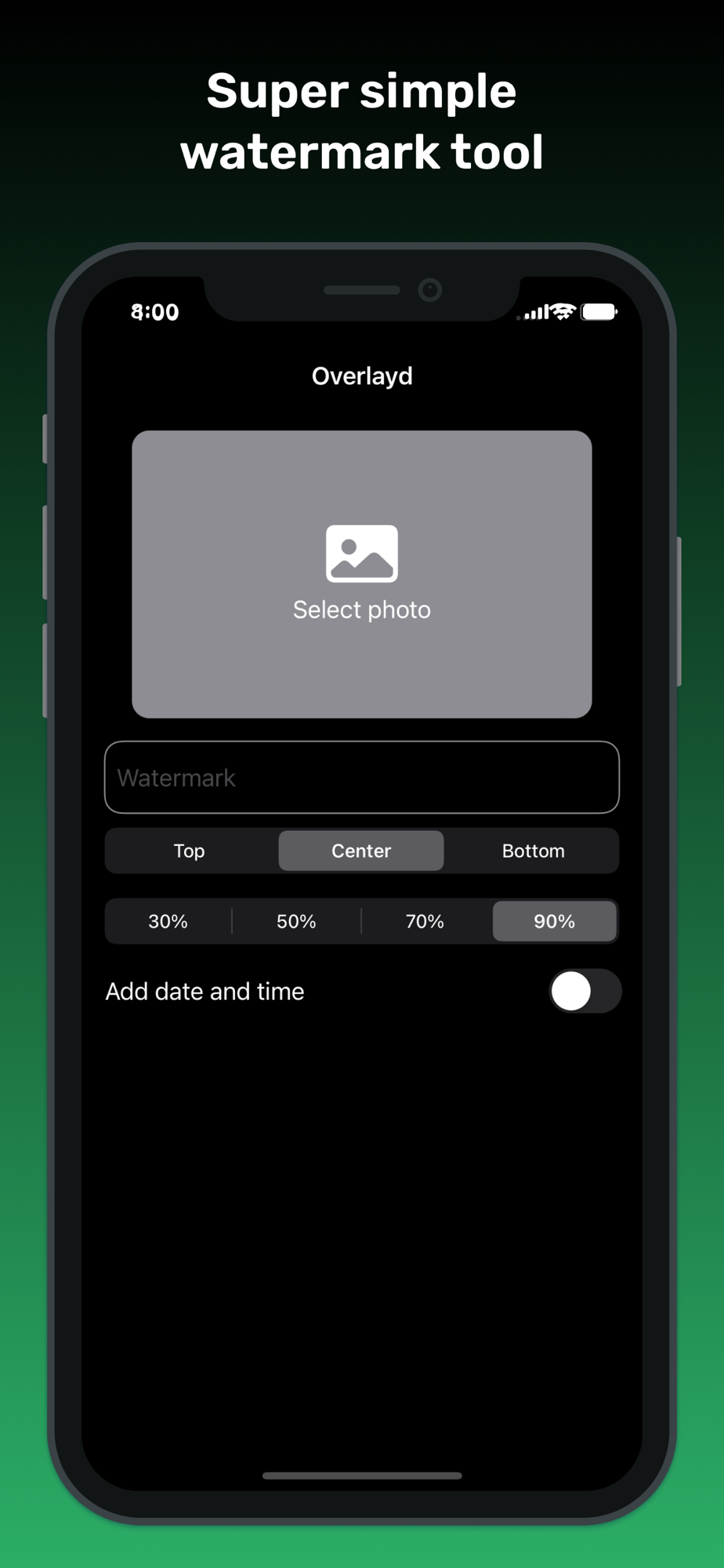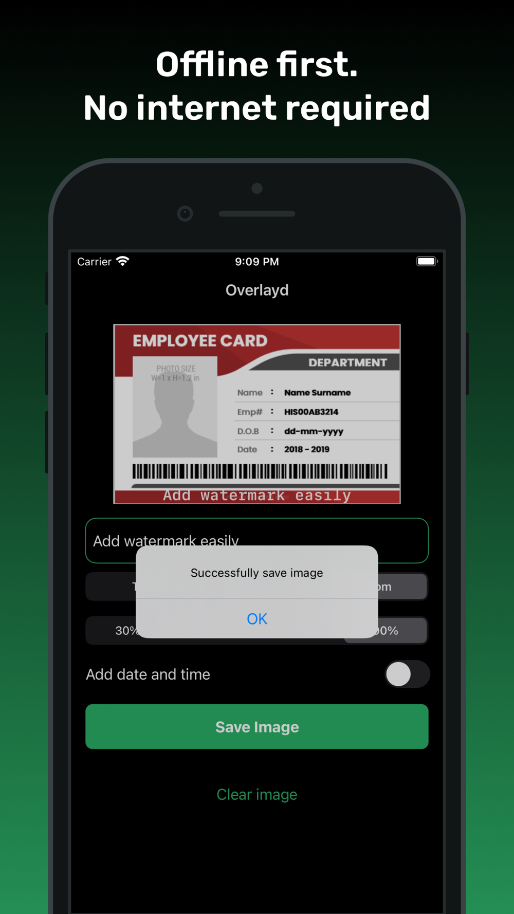 Overlayd is a super simple app to add watermark. Especially on sensitive images/photos such as identity card.