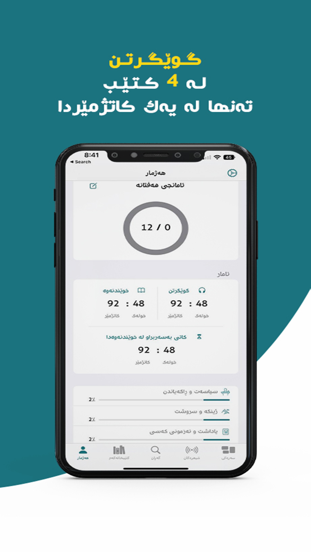 »گوێگرتن لە تەواوی کتێبەکان.
