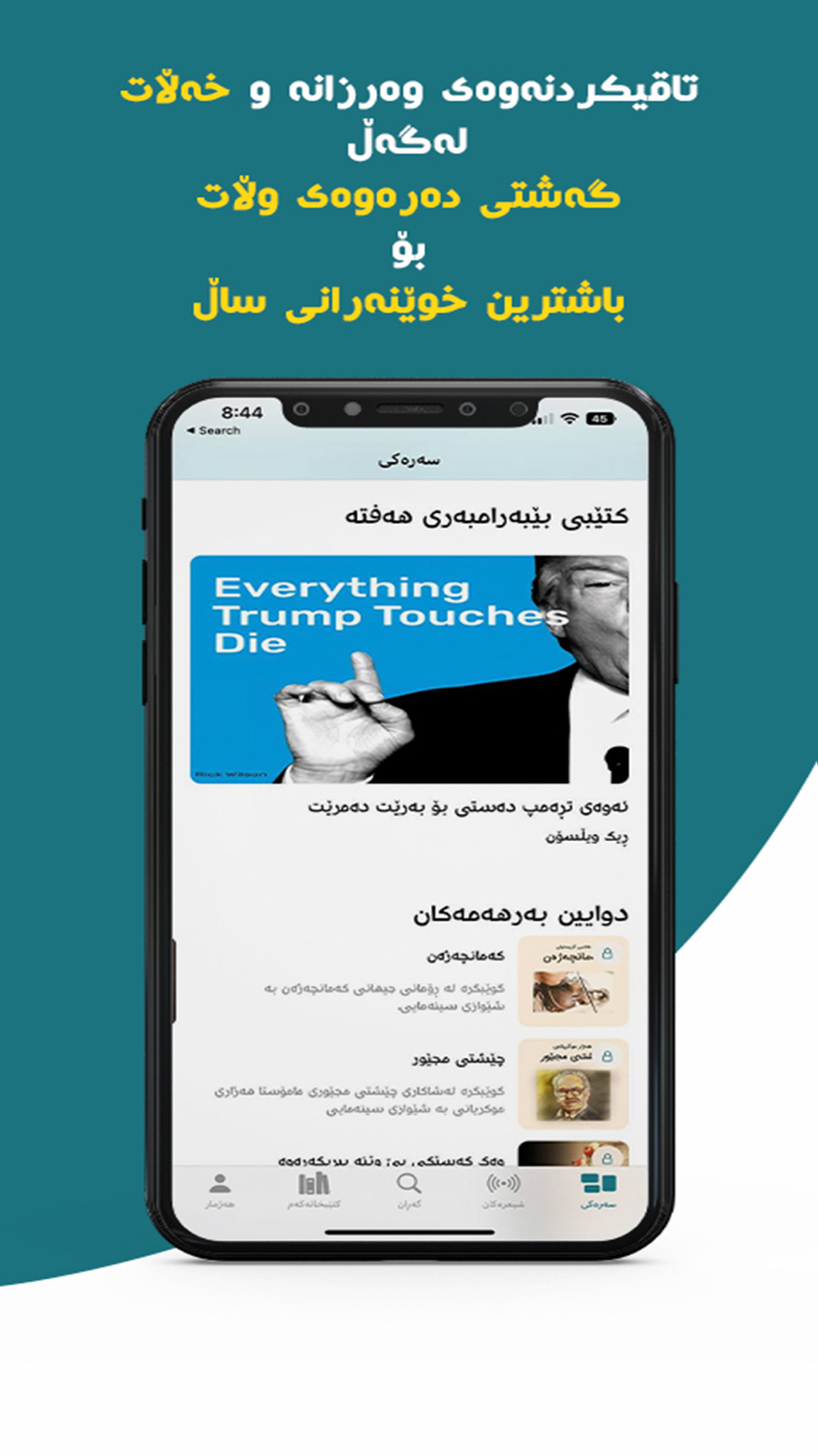 »خوێندنەوە و گوێگرتن لە کتێبەکان بە بێ هێڵەکانی ئینتەرنێت.