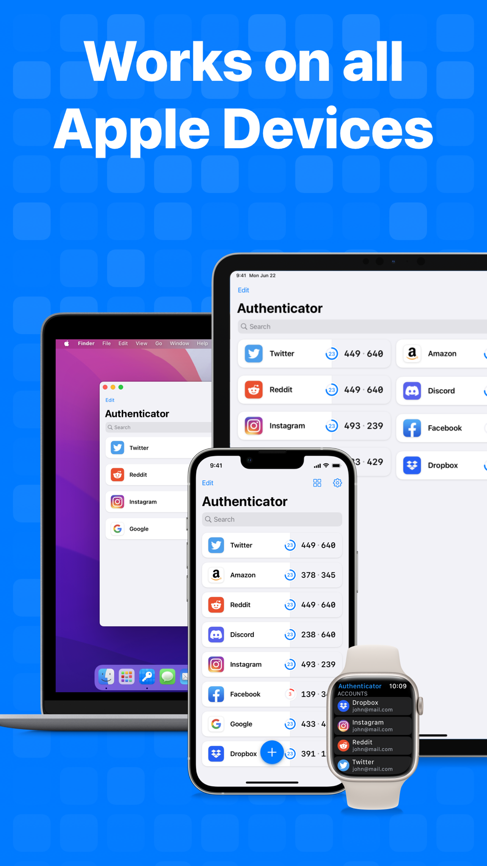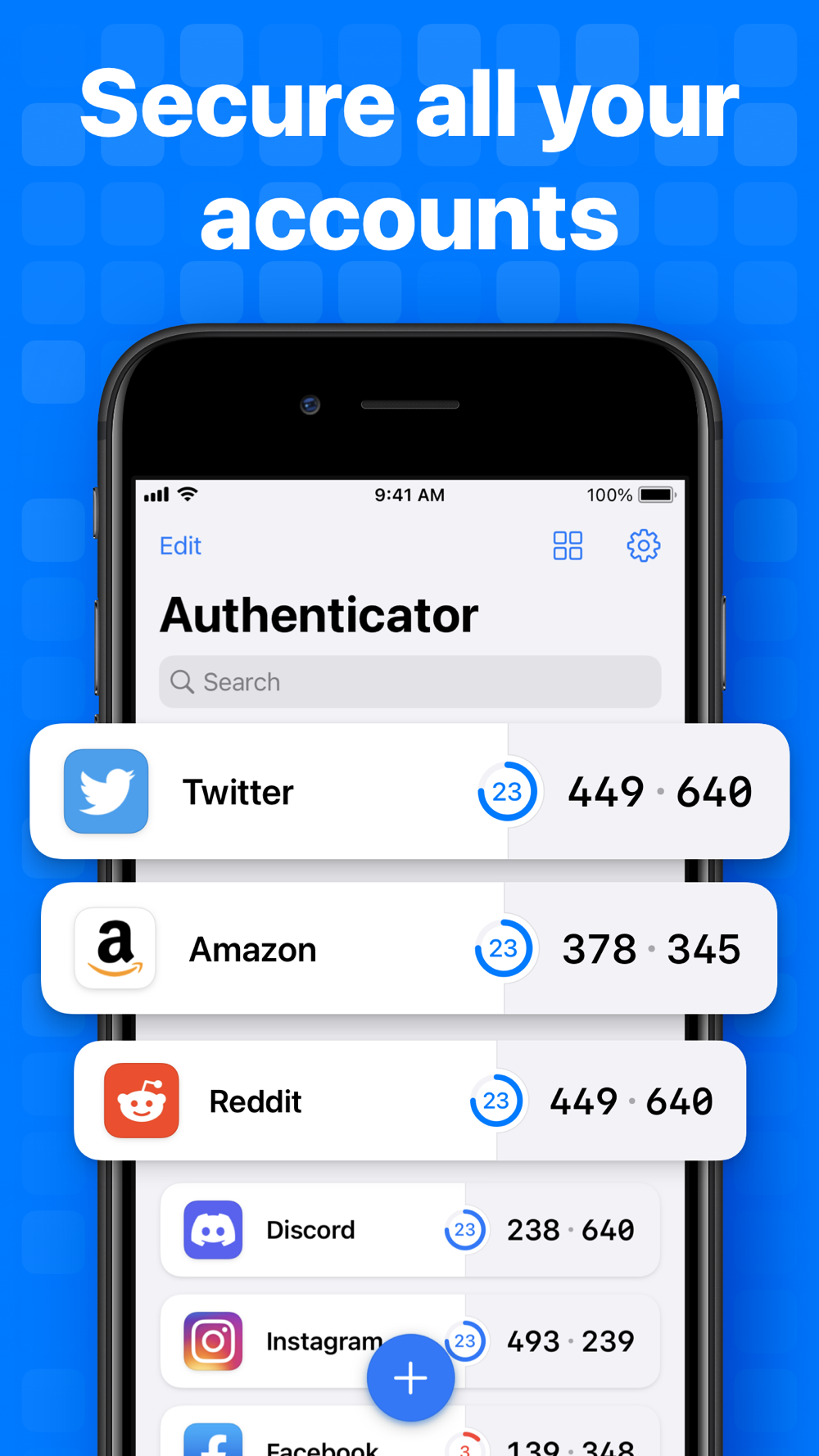 Authenticator App helps you to secure all your online accounts. Use Authenticator App to scan, generate and save 2FA & MFA codes for popular services including Facebook, Microsoft, Instagram, Google, Amazon, Coinbase, Authy, Roblox and many more.
