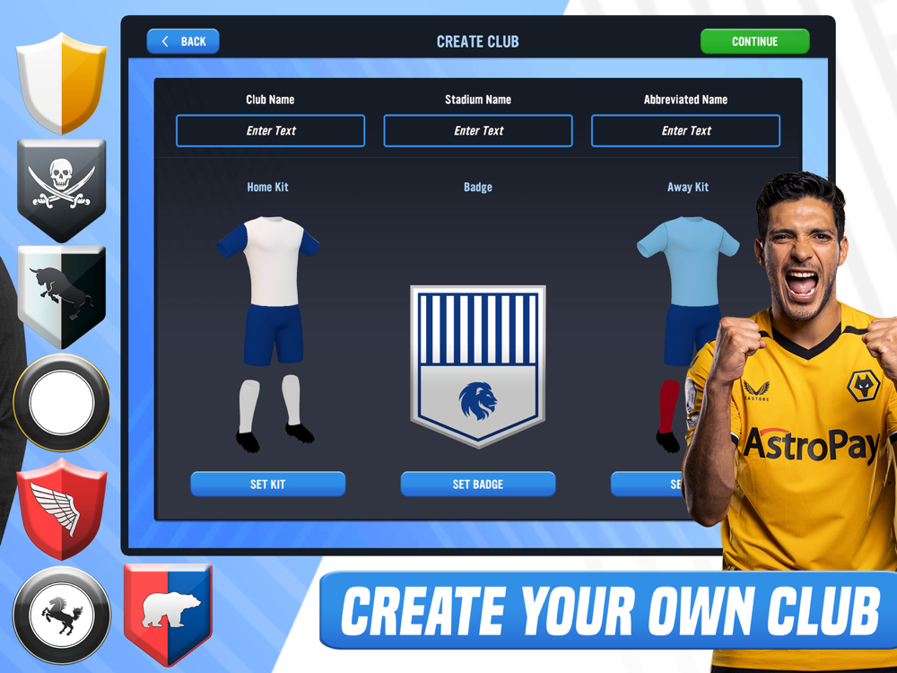 Become a Football Director with Create-a-Club. New for Soccer Manager 2023, bring your own dream football club to life, designing everything from club name & badge to your home & away kits, with more customisation options to make your new club your own. As a football director in Create-a-Club, start from the bottom divisions in England, Scotland, France, or Germany and work your way up to the finest football leagues. Balance pressure from the board, fan expectation, and club finances as you battle for promotion to the top divisions - it’s the ultimate test of your organisational & managerial talents!