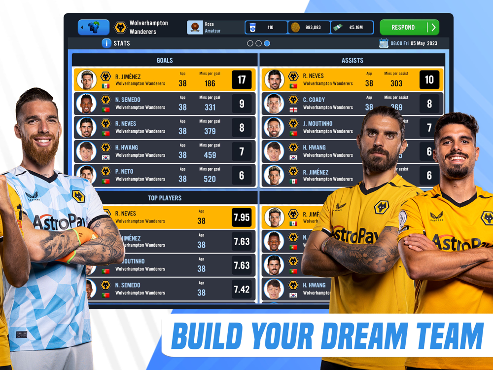 Your football career starts here. Embark on your journey as a pro football manager and build your ultimate dream team in the most enjoyable and accurate football management game available. The massive new 2023 player transfer update lets you manage any football club from your favourite football leagues with 26,000 official FIFPRO™ licensed players in the roster. Choose from over 900 clubs from 35 of the top footballing countries!