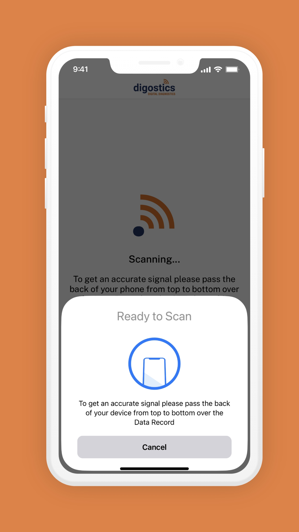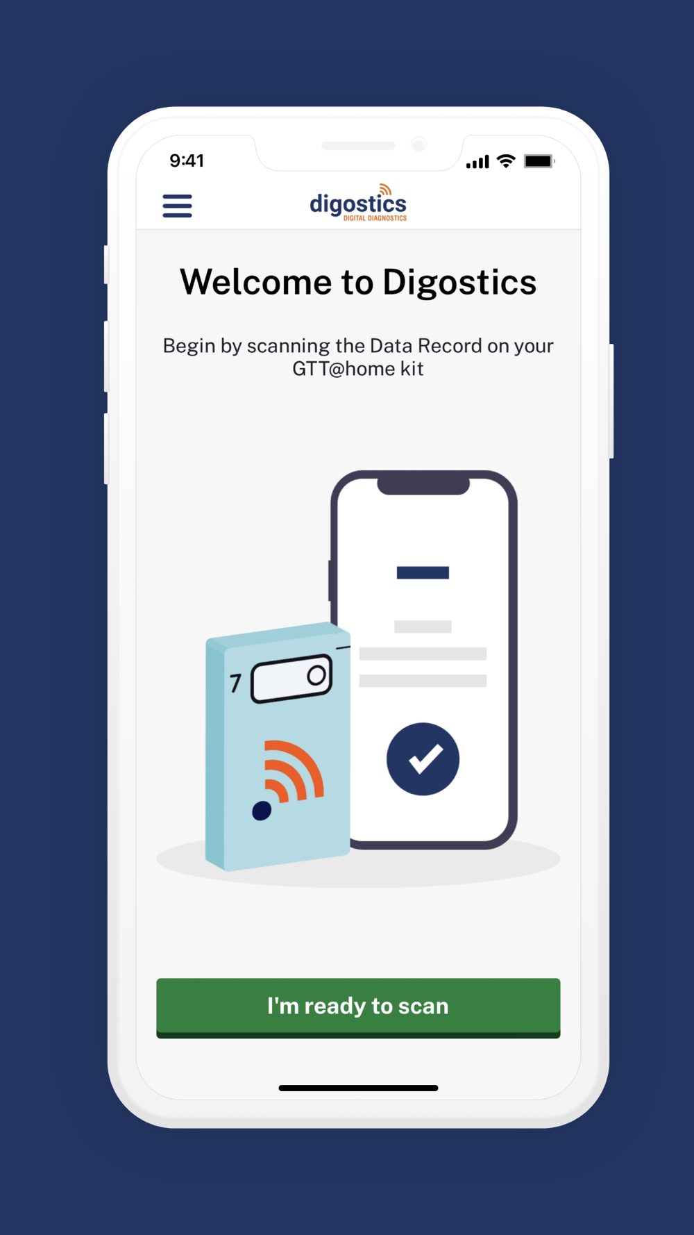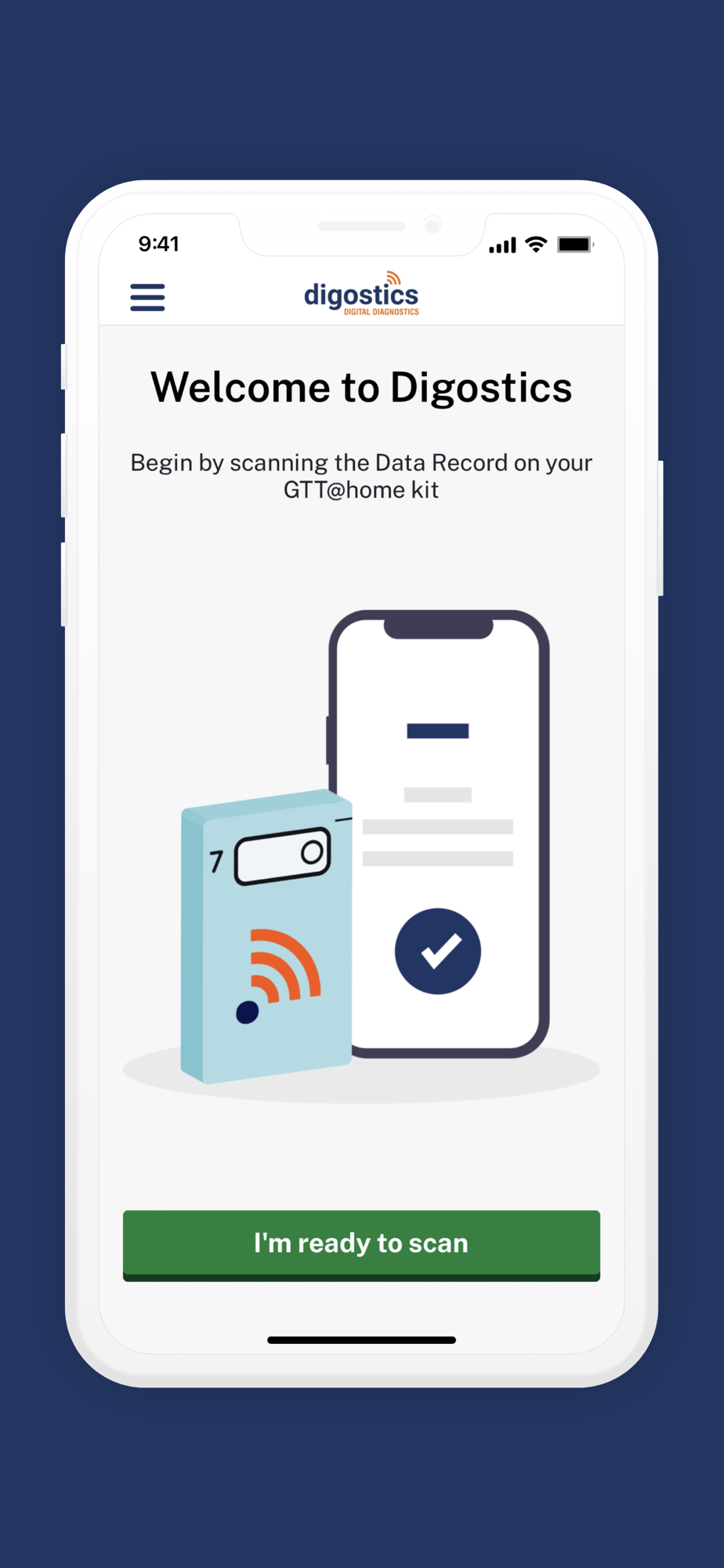 The GTT@home app is used to scan the completed GTT@home tester and send the data to the Digostics cloud, using NFC. The data is checked and the calculated results are sent directly to your healthcare provider.