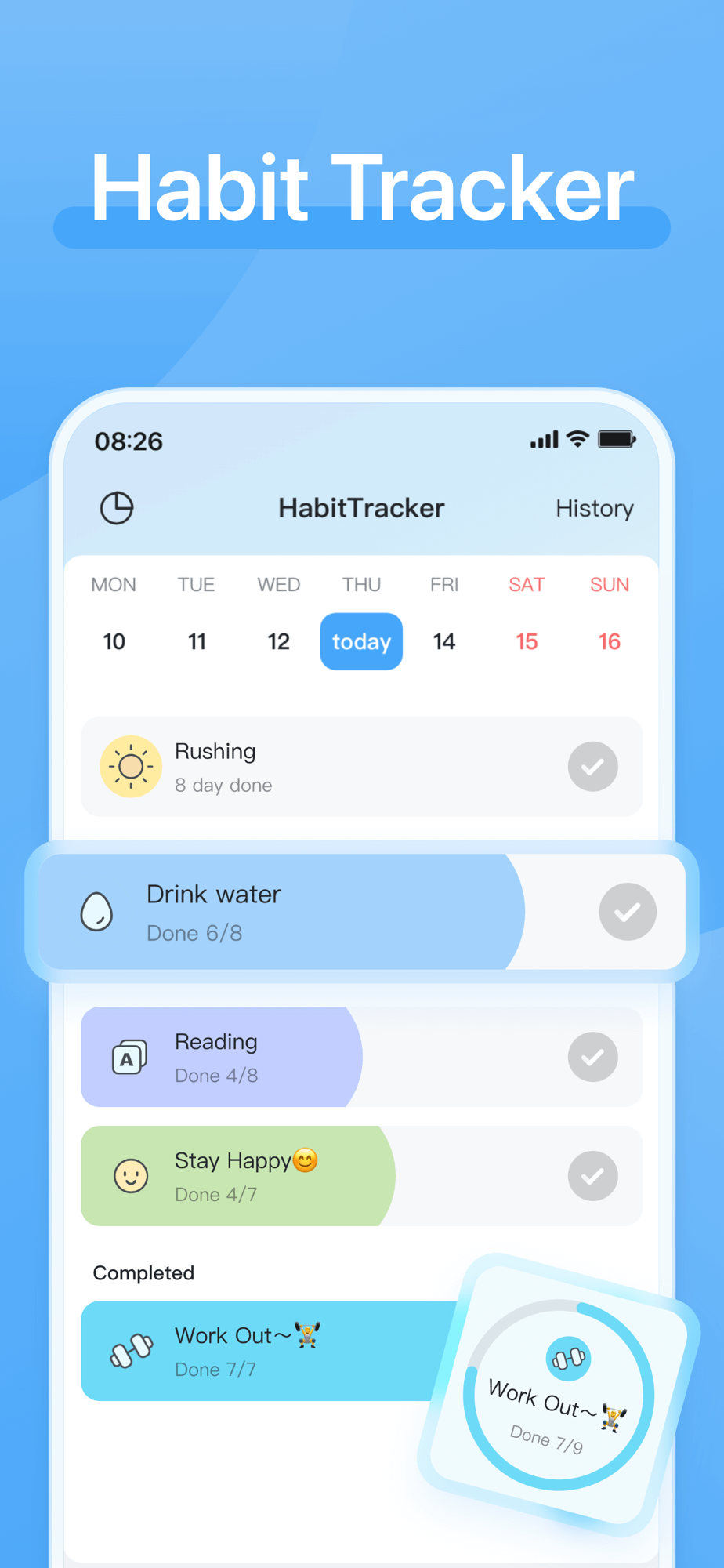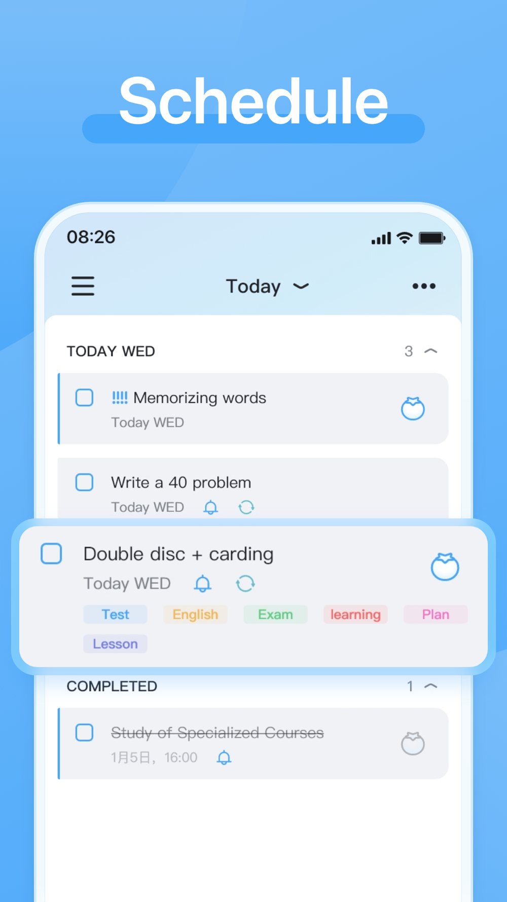 -Current time: We always show you the current time progress bar, a stronger event concept = a more self-disciplined you.