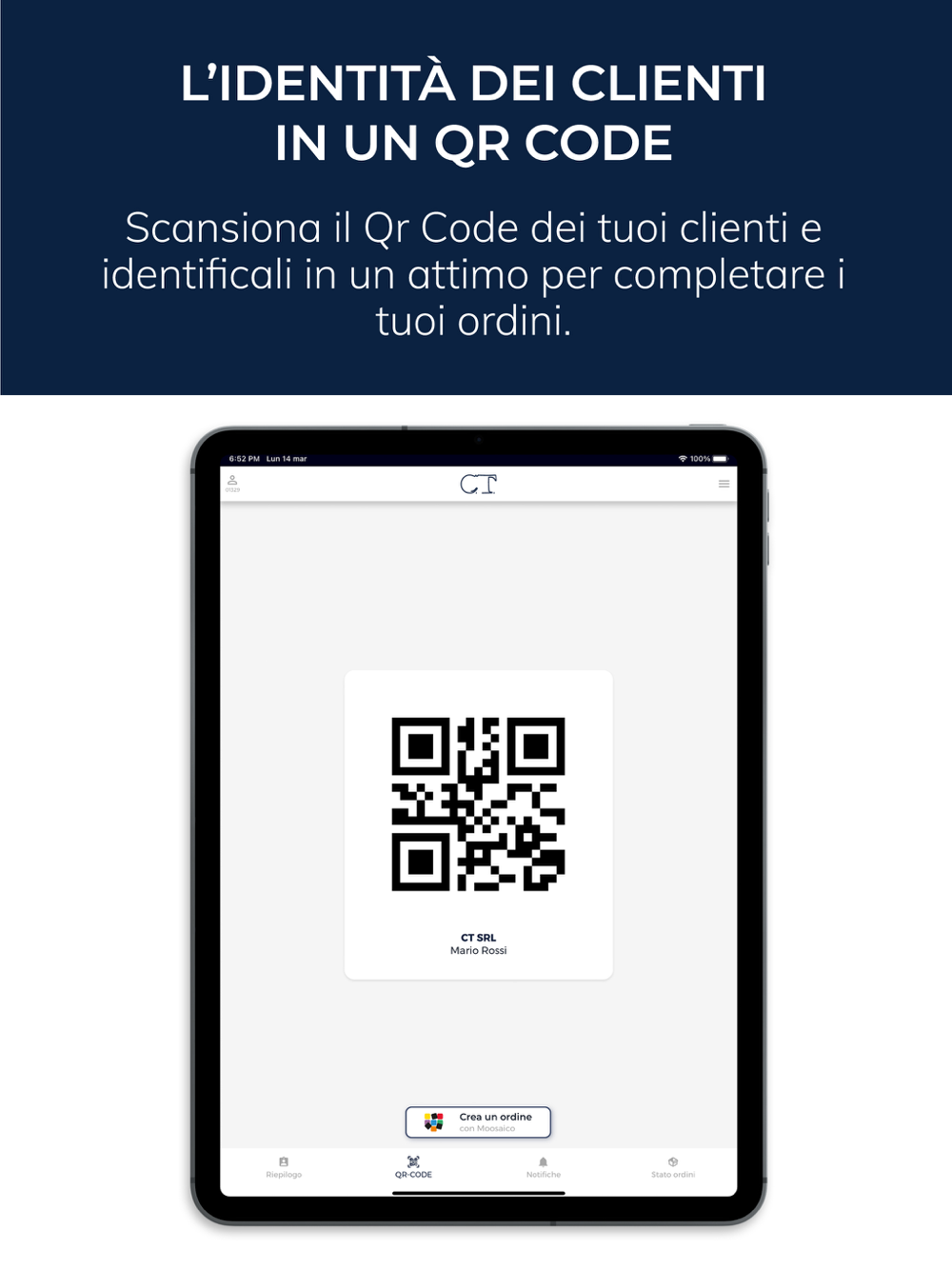 Grazie alle sue funzionalità potrai avere il tuo QR code personale, ricevere notifiche di comunicati e visualizzare lo stato dei tuoi ordini.