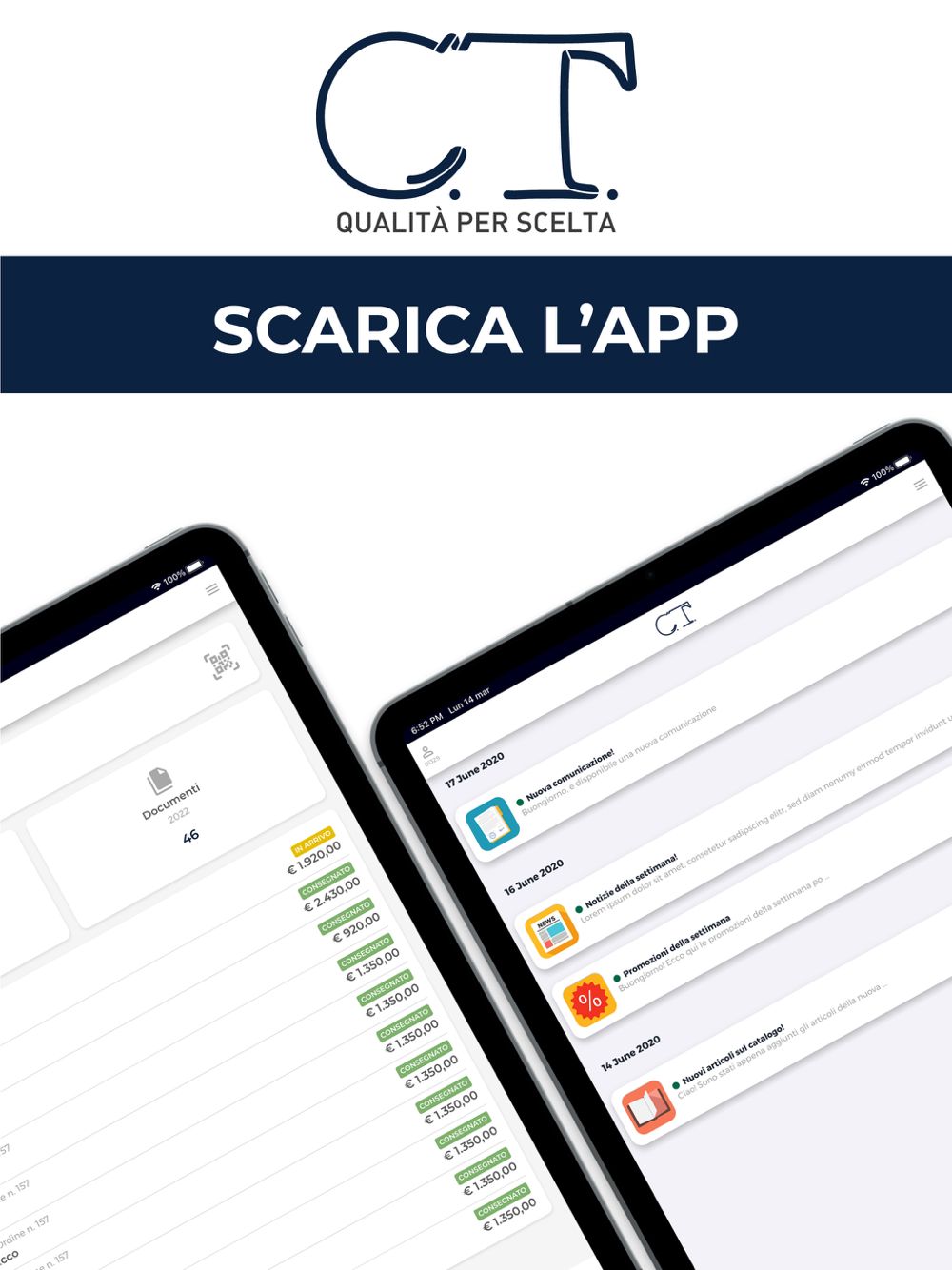 CT è l’app pensata per gli agenti e i clienti di CT Srl che ti da tutto quello di cui hai bisogno per creare, gestire gli ordini e risparmiare tempo.