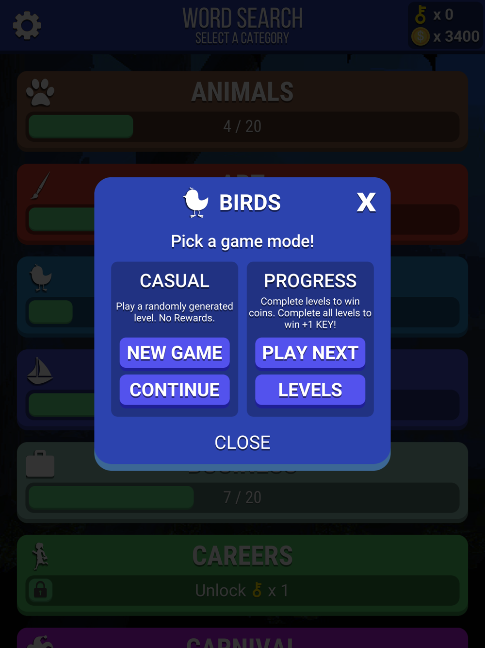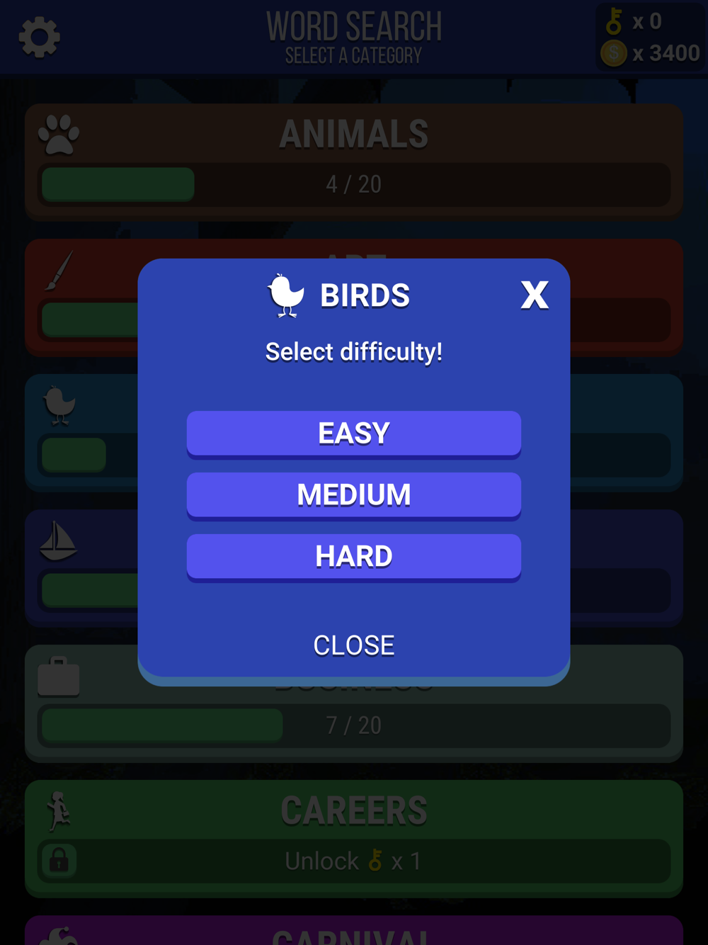 Multiple Difficulty Levels: The game offers different difficulty levels, allowing both beginners and seasoned word search enthusiasts to enjoy the gameplay. Choose from easy, medium, or hard levels to suit your skill level and preference.