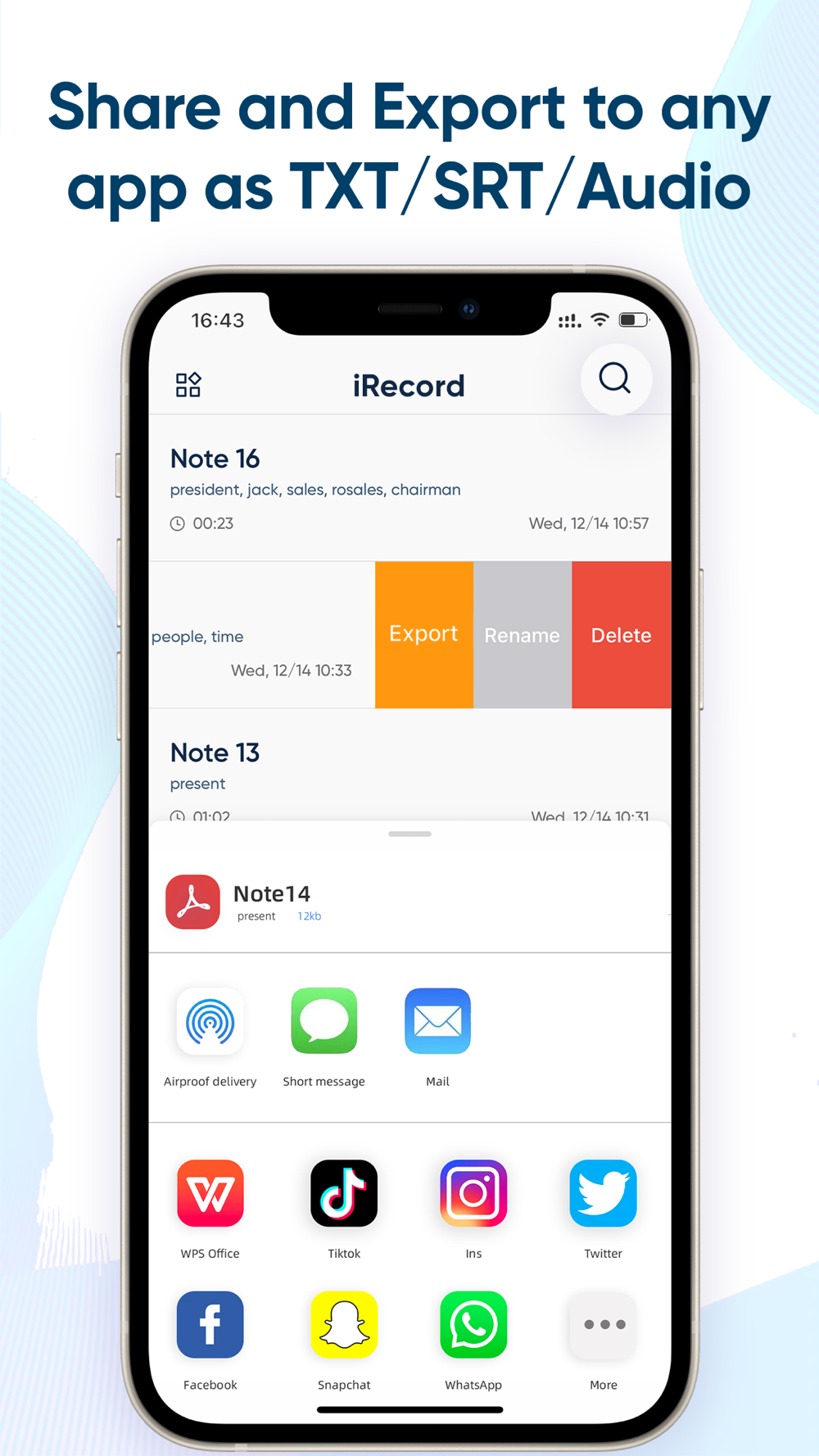 * Share your recordings and transcripts via messaging apps like WhatsApp and Messenger, making it easy to collaborate with colleagues and friends.