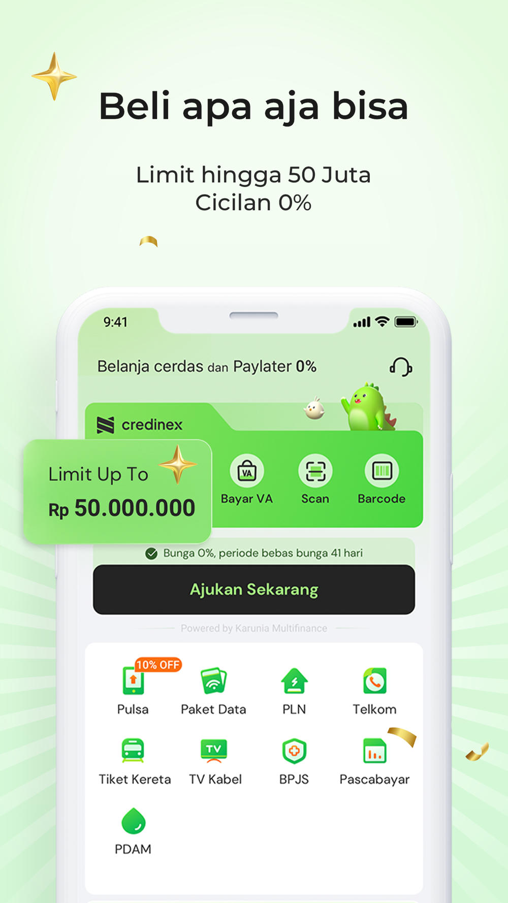Credinex Paylater 0%, Beli dulu bayar nanti, tidak perlu DP, tidak perlu kartu, mudah dan cepat.