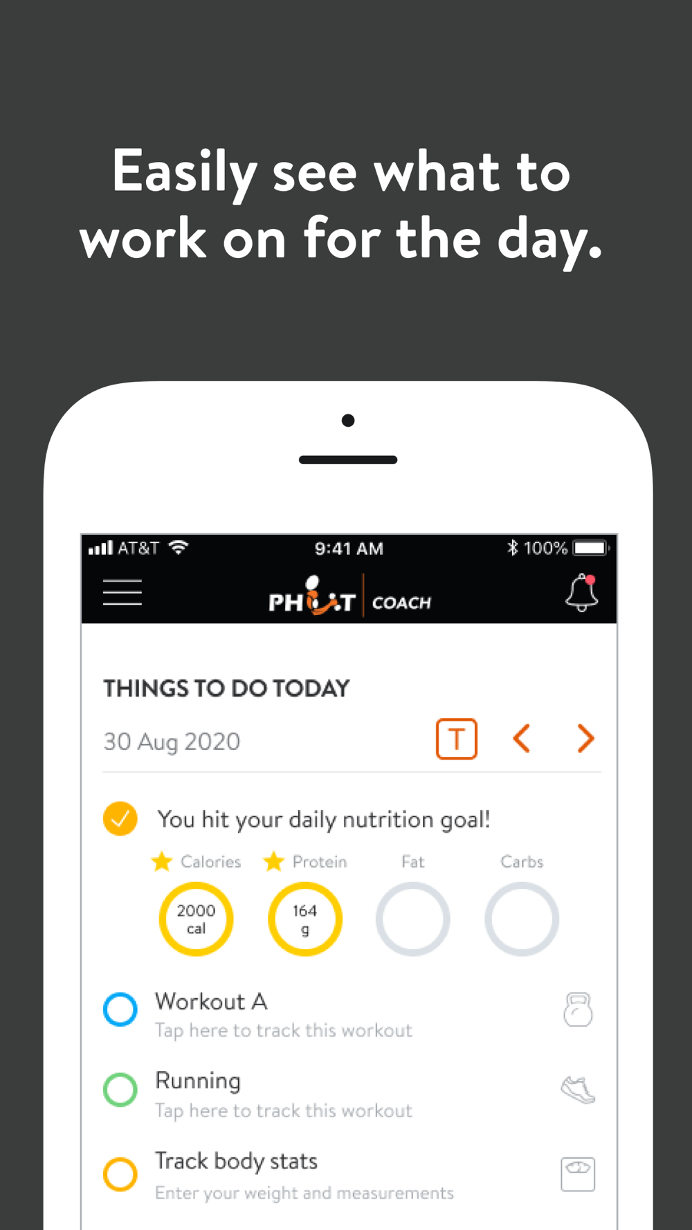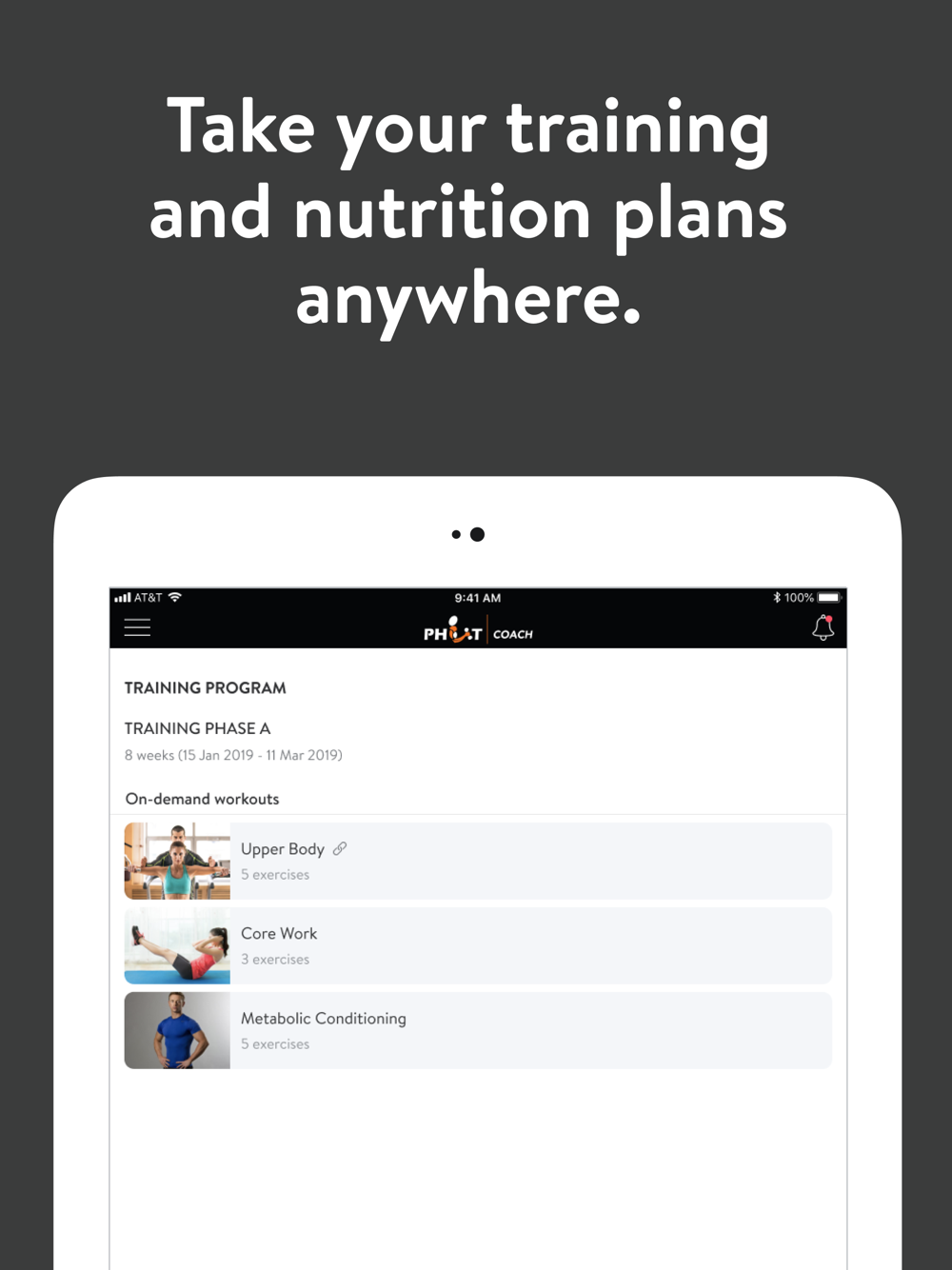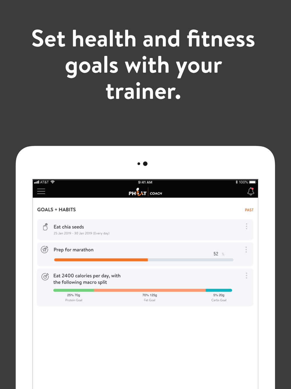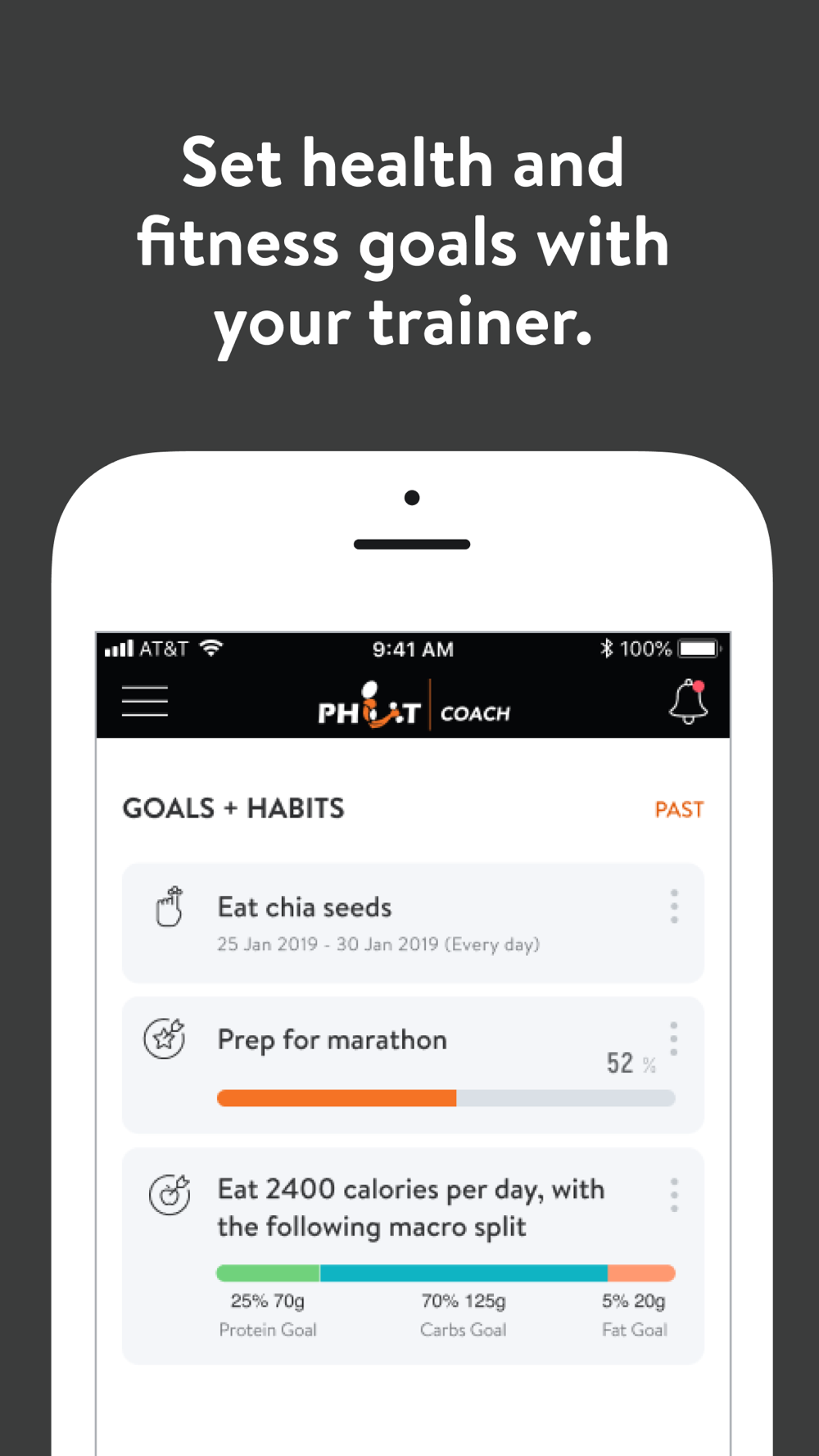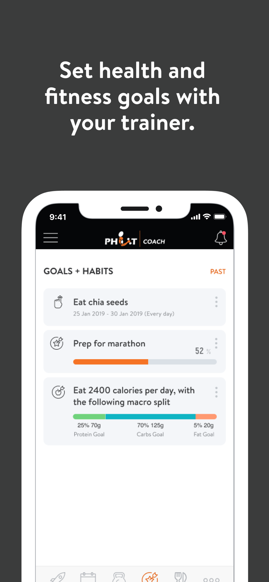 With the PHIT Coach App, you can start tracking your workouts and meals, measuring results, and achieving your fitness goals, all with the help of your personal trainer.