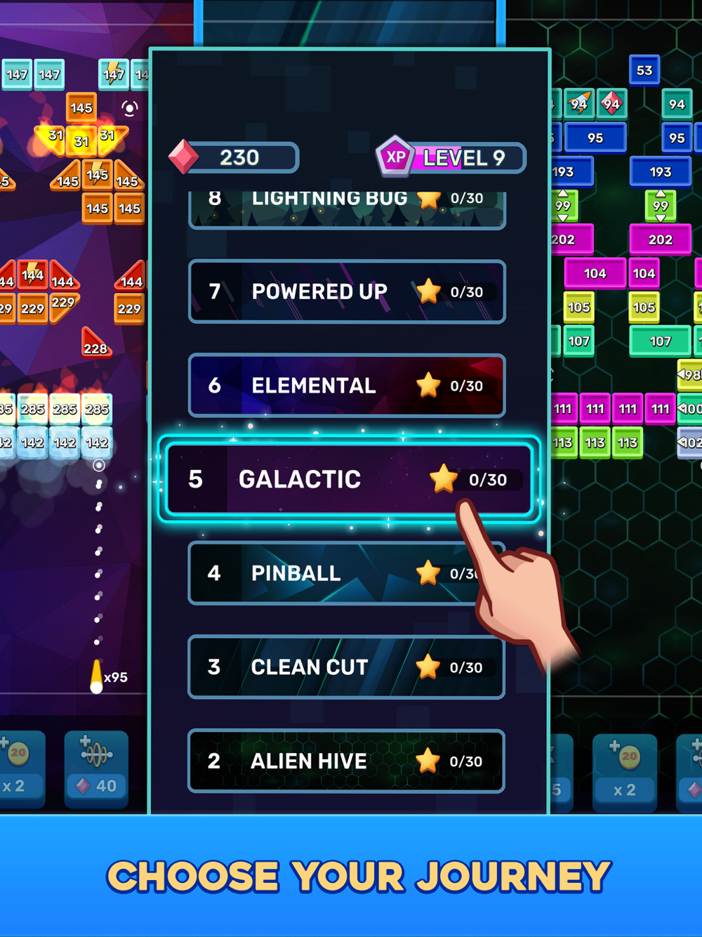 - Journeys: Explore 10-stage sets with unique mechanics, endless brick patterns and boards, thanks to our innovative stage generator.