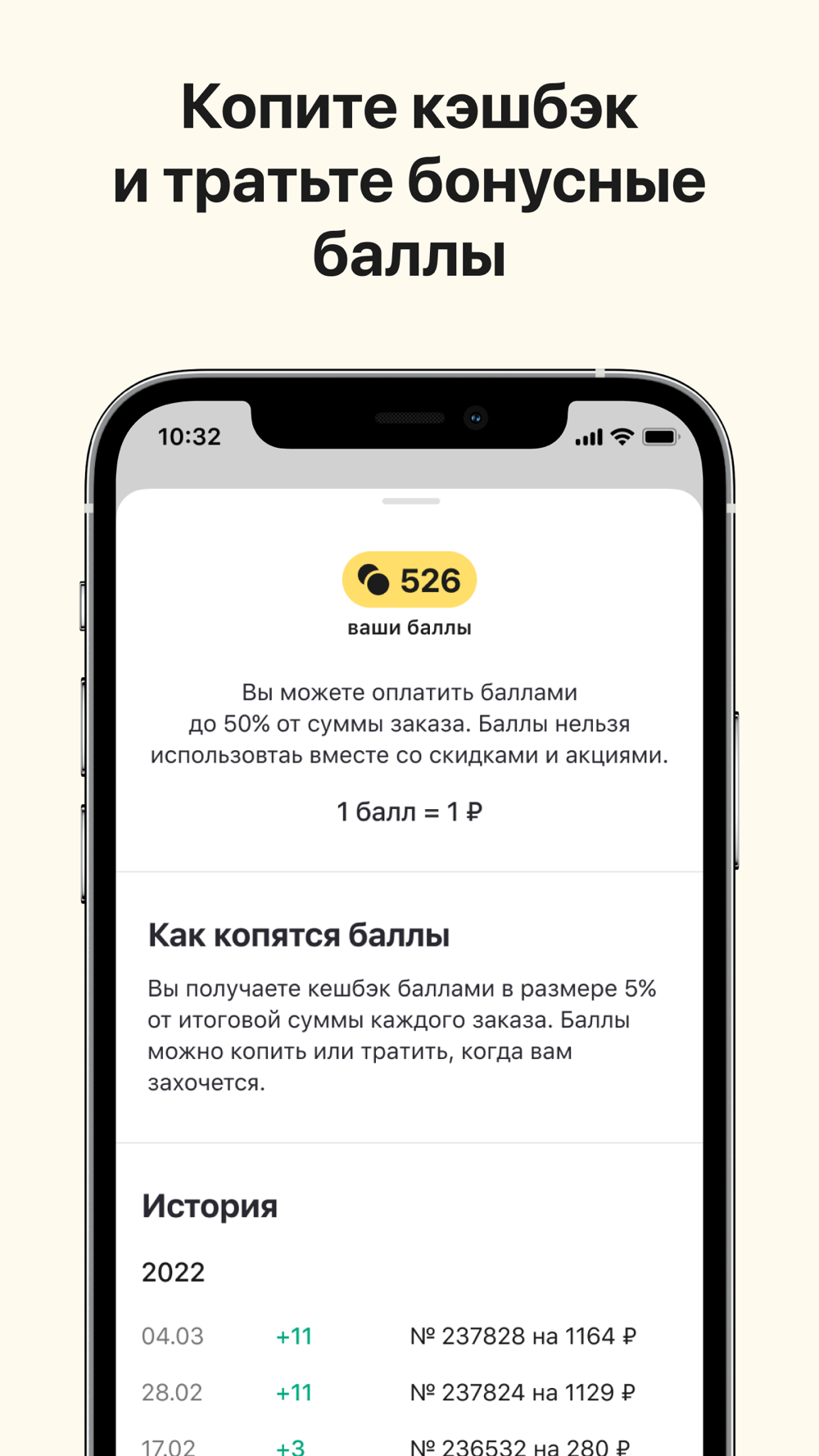 - получайте кешбэк баллами за заказы.