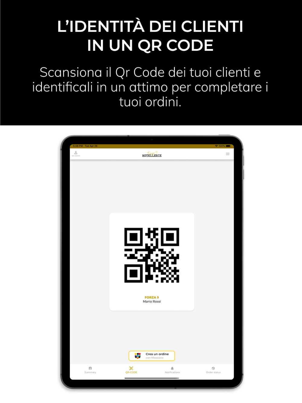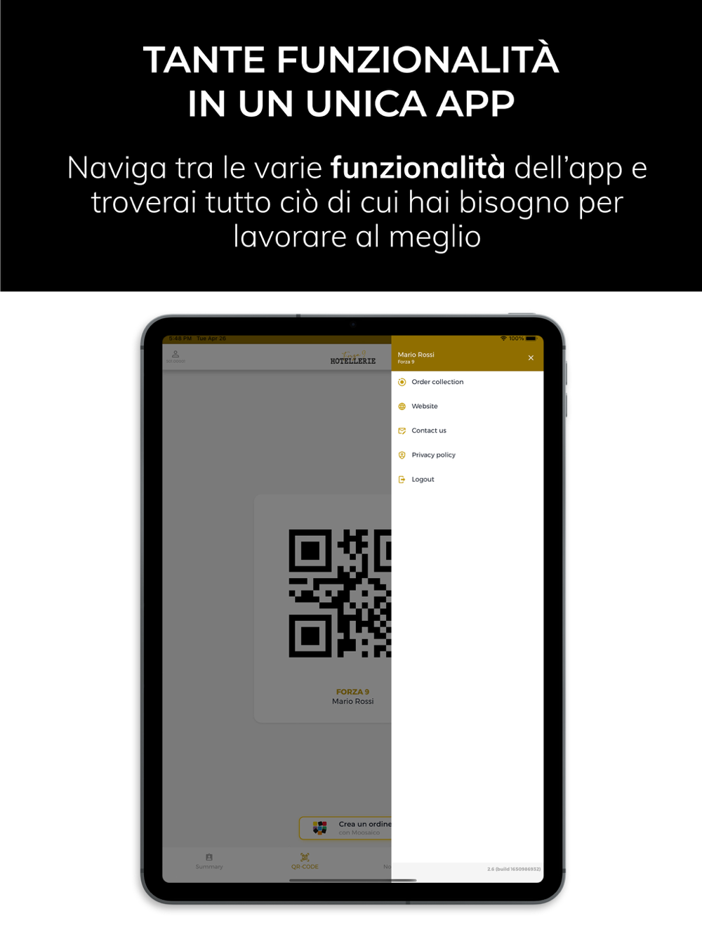 Grazie alle sue funzionalità potrai avere il tuo QR code personale, ricevere notifiche di comunicati e visualizzare lo stato dei tuoi ordini.