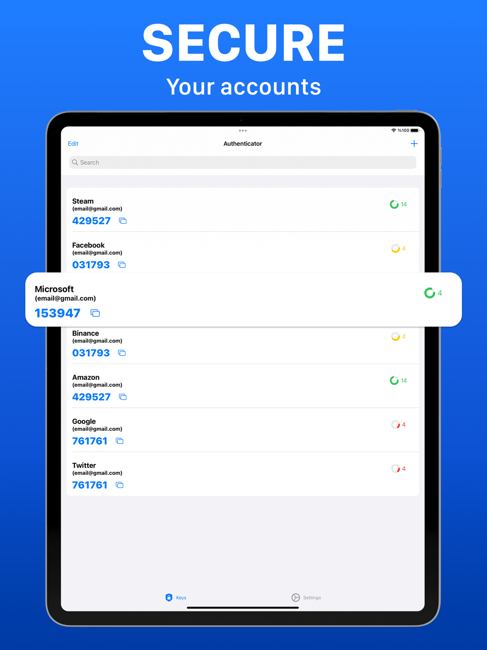 Authenticator app store and generate secure 2FA (two-factor authentication) tokens for your online accounts on your device.