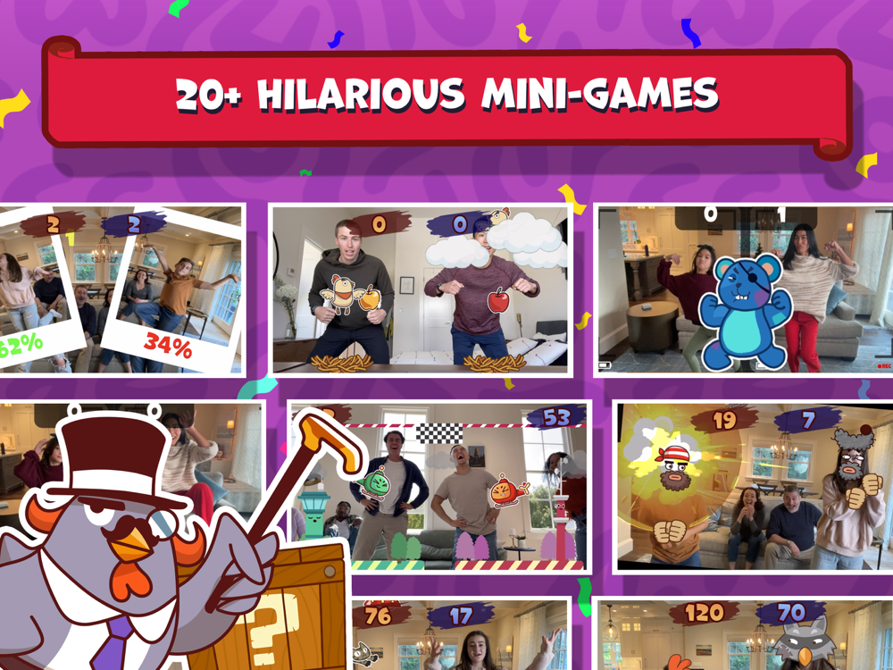 With a large collection of mini games that’s constantly expanding, everyone has a chance to reign supreme or make a total fool of themselves. Each game is as goofy and chaotic as the next. Whether it’s Cat Stack, Viking Volleyball or Cookie Catastrophe, Party Fowl has something for everyone!