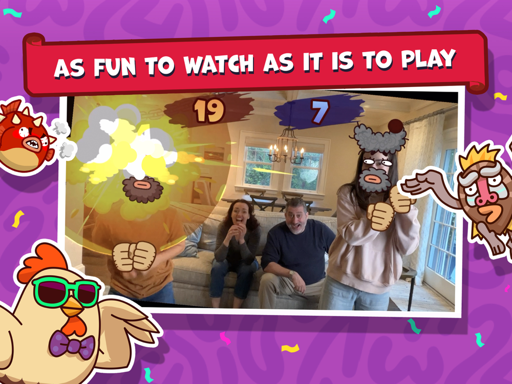 Party Fowl is also super simple to set up. Just set your device down so that you and your opponent are visible in the front-facing camera. For a more immersive experience, screencast your device to a TV using Airplay.