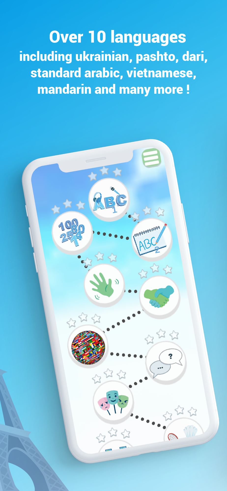 Basic-Français یو اپلیکیشن دی چې تاسو ته د فرانسوي زده کړې پروسې په لومړیو مرحلو کې لارښوونه کوي. لوډو او ویک د دې نړۍ د ټولو خلکو استازیتوب کولو او د جنډر مساوات ته وده ورکولو لپاره رامینځته شوي. دوی تاسو ته اجازه درکوي د خبرو اترو له لارې فرانسوي کشف کړئ (په فرانسوي کې) کوم چې د ورځني ژوند ډیری اړخونه پوښي. دلته ډیری عکسونه هم شتون لري چې تاسو سره به ستاسو د لغتونو لوړولو کې مرسته وکړي