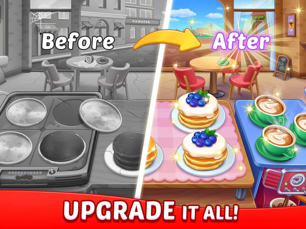 Learn various cooking skills in different restaurants like a real star chef, from how to cook the dishes with a time-management strategy to how to satisfy the needs of every customer. Upgrade your restaurants, improve your cooking skills, and serve top-quality dishes for customers! Let's experience the brand new restaurant story! Get ready to serve more and more customers!