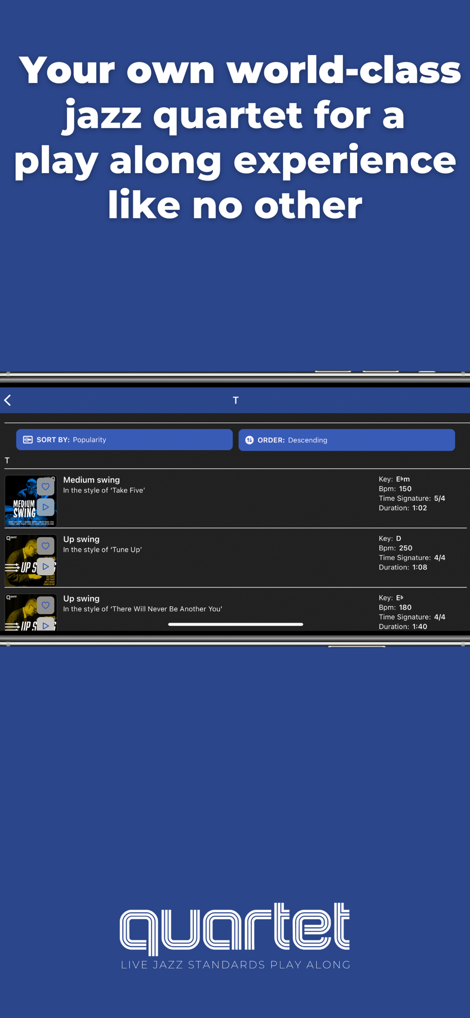 Quartet Volume 1. Your own world-class jazz quartet in one feature-packed app.