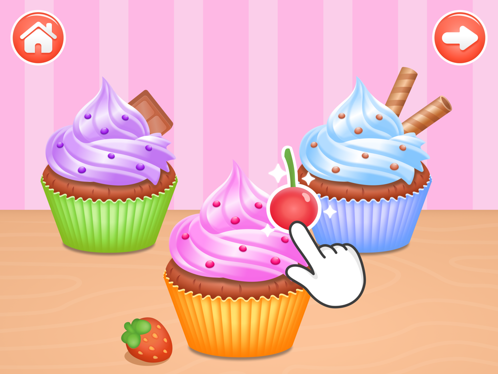 Almost each kid got a sweet tooth. In our application, we provide an opportunity for kids to learn how to make their own interesting mini-cakes and colorful cupcakes. Make a biscuit, bake four cakes in special molds and create your own unique set of interesting cupcakes by decorating the cakes with delicate cream, berries and fruits.
