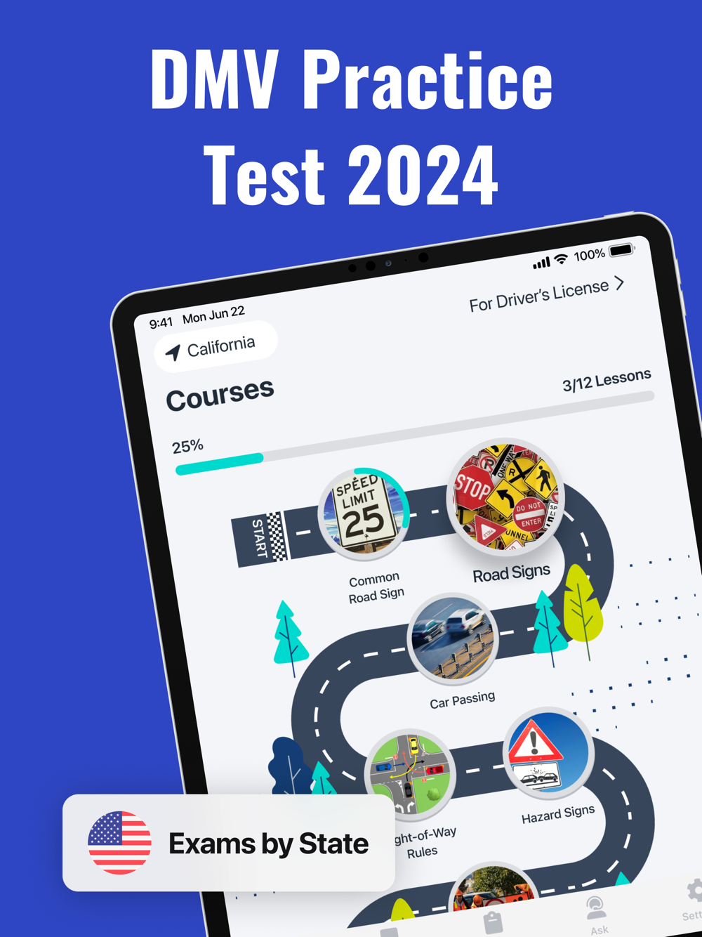 myDMV prepares DMV knowledge tests for a driver's license including DMV, CDL and motorcycle. Well-designed courses and tests are available for all 53 states.