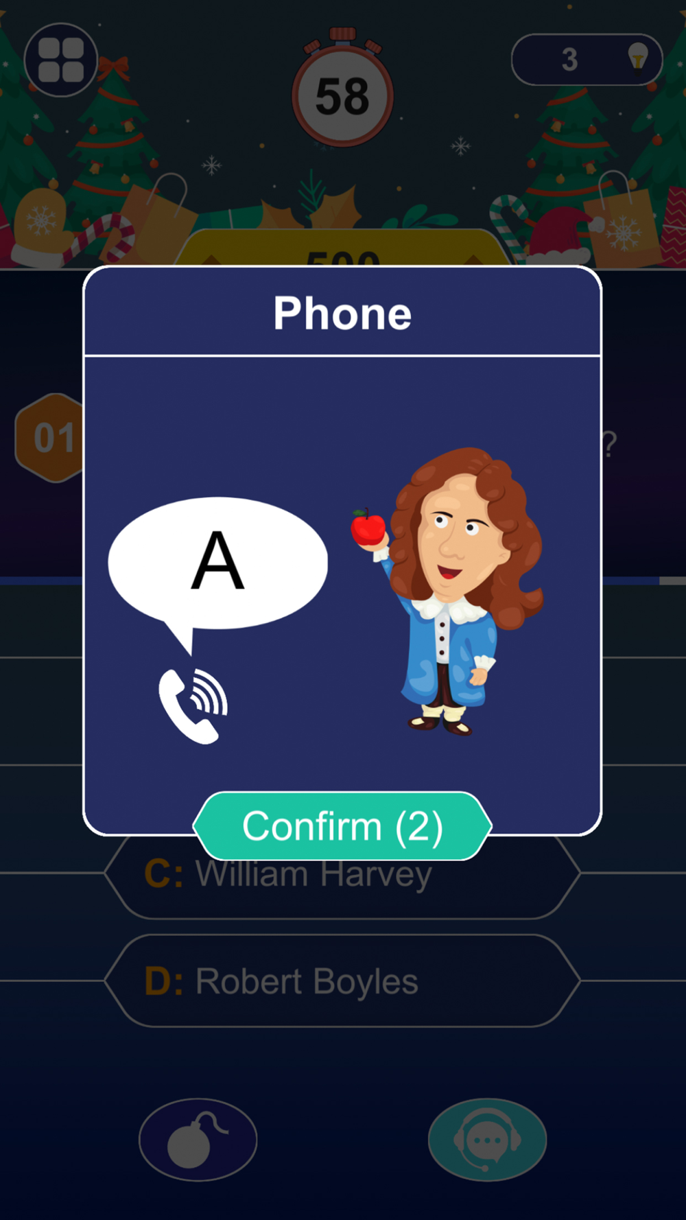 If you can't answer the trivia questions, don't worry, you have two free help, including 50:50 and phone calls to famous scientists worldwide.