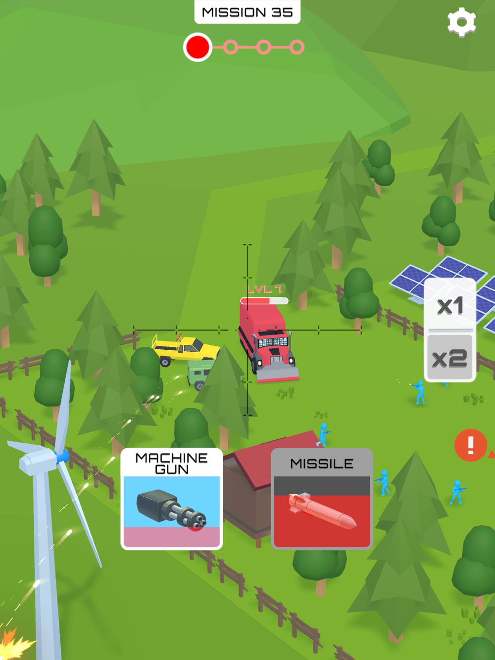 Protect your troops and defend your base! You are controlling an aircraft equipped with different weapons. Your mission is to prevent the enemy from conquering your base. You can destroy buildings and bridges and make cars and gas tank explode!