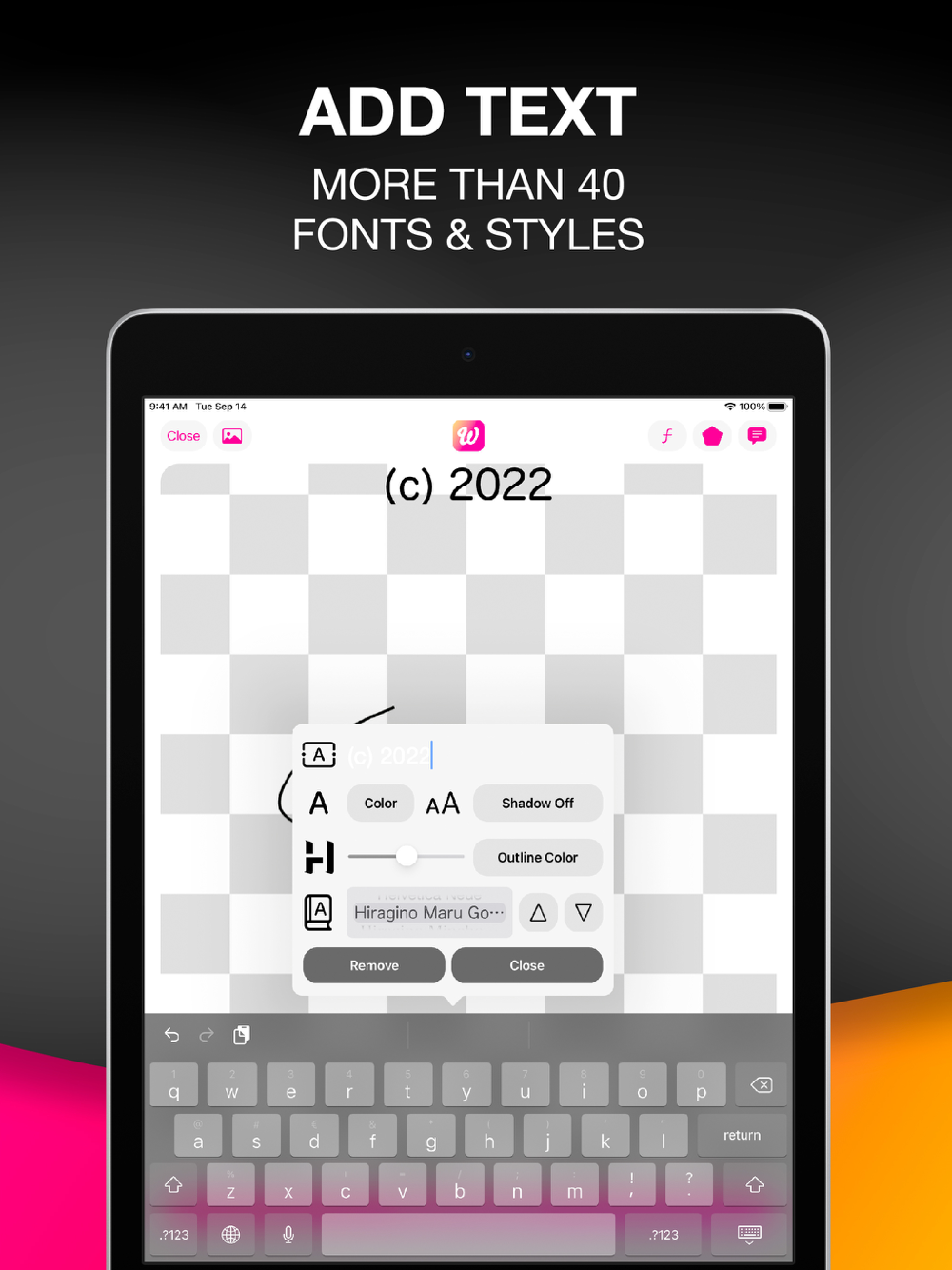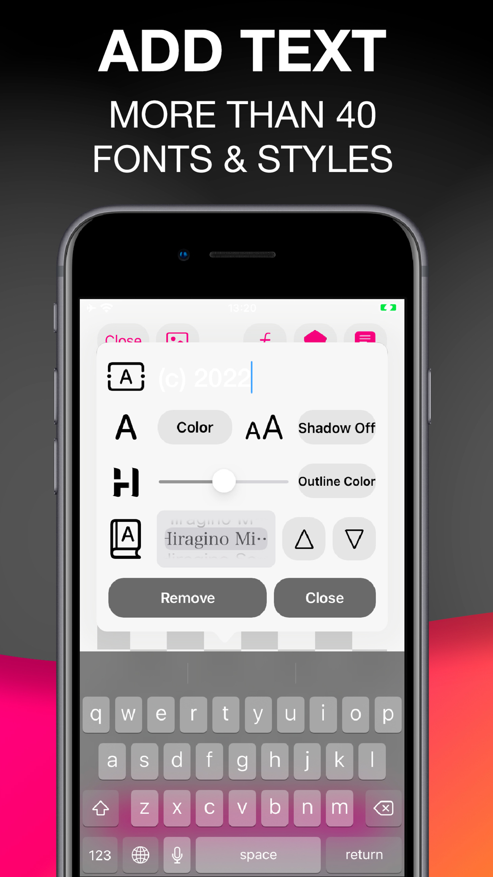 - Watermark/Logo creator: provides a watermark editor where you can create your own logo by adding signatures, text, photos, shapes and more!