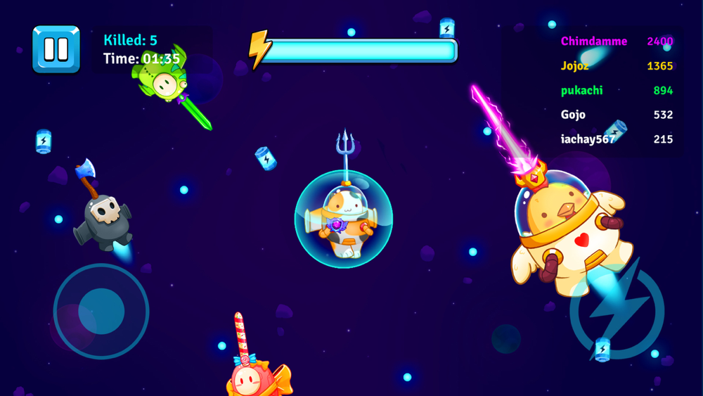 SPACE.IO awesome game has upgraded gameplay and graphics with different skins. You can play offline alone no matter where you are, or you can also play battle with other character to be the last survivor. Push your jet to the first place on the leaderboard in this popular mobile game!