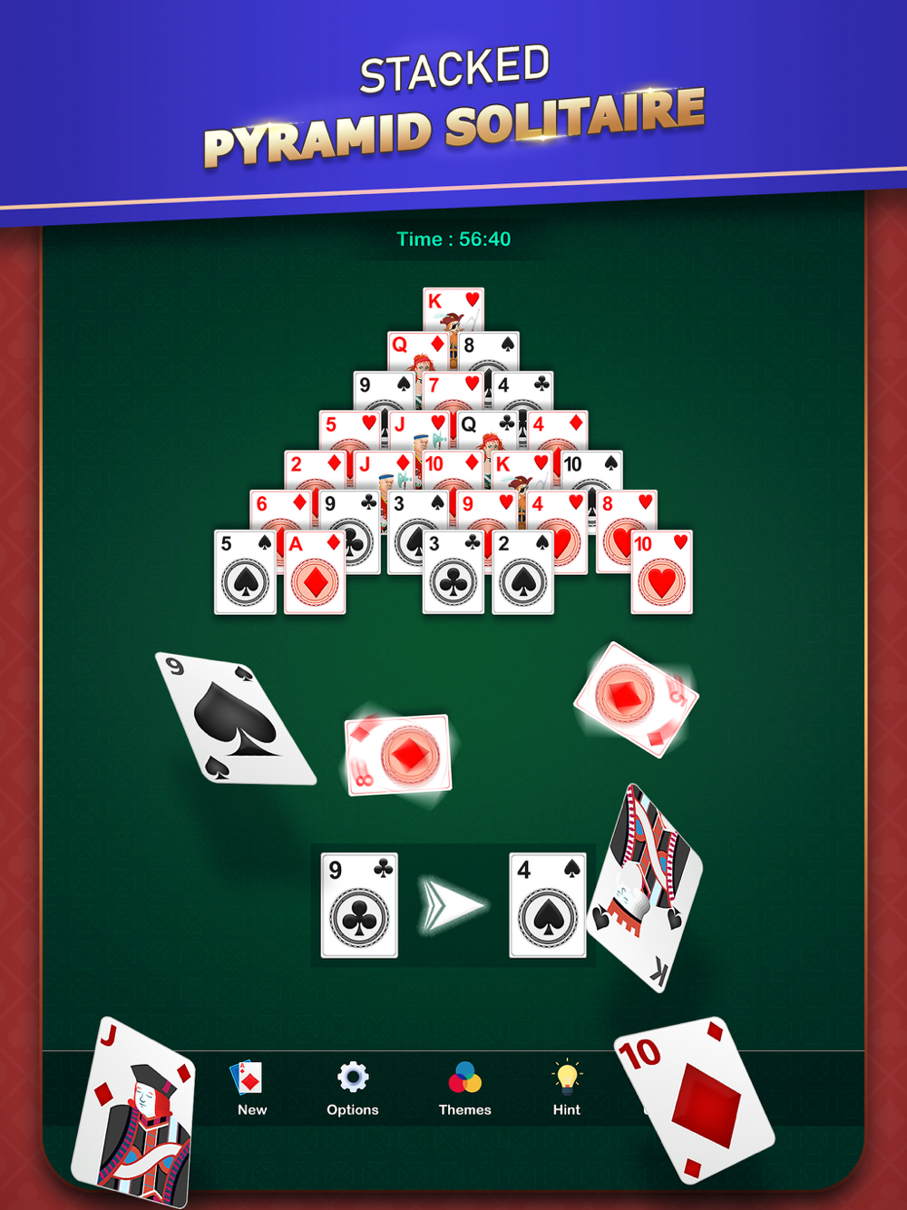 - Challenge yourself to reach the top of the Pyramid and clear as many Solitaire boards as you can