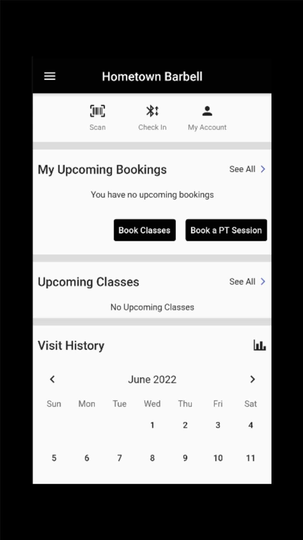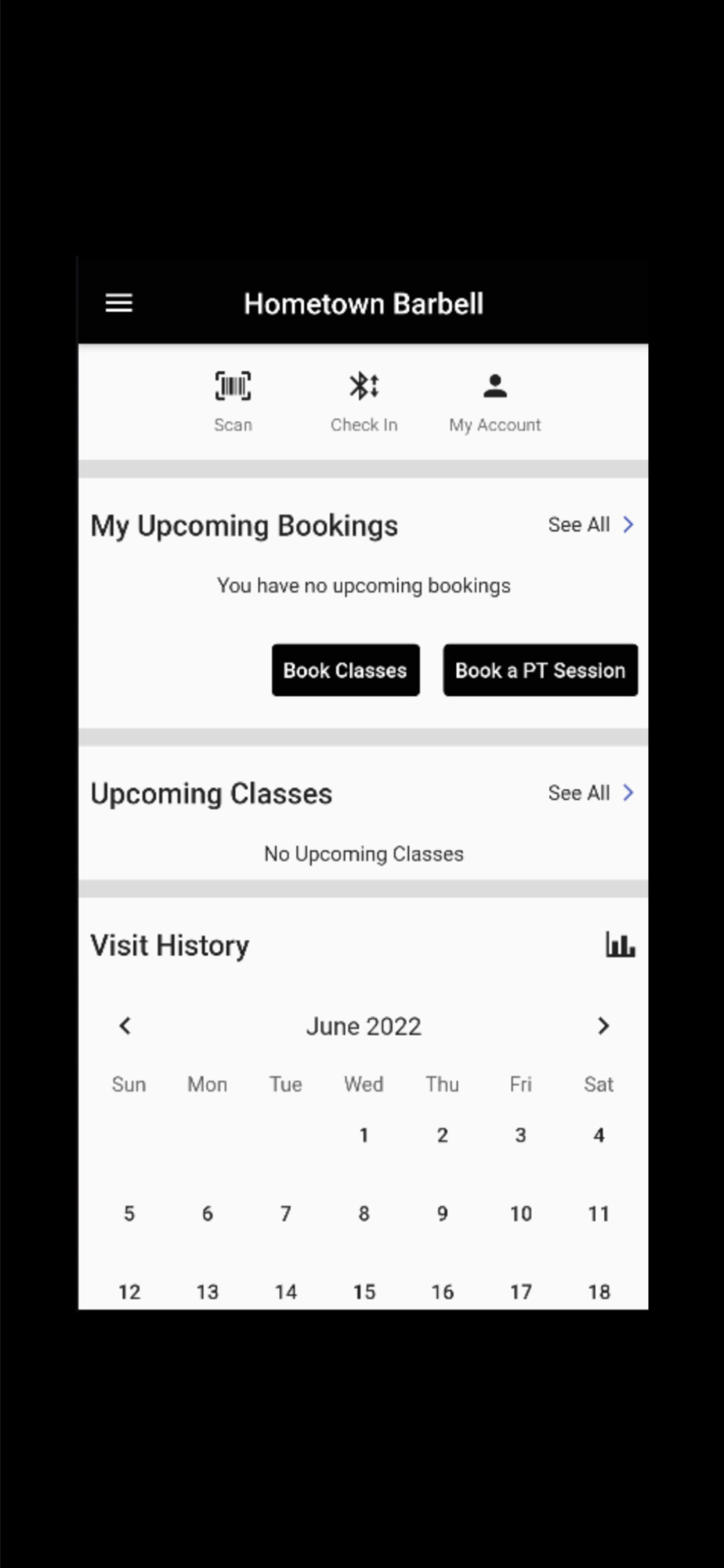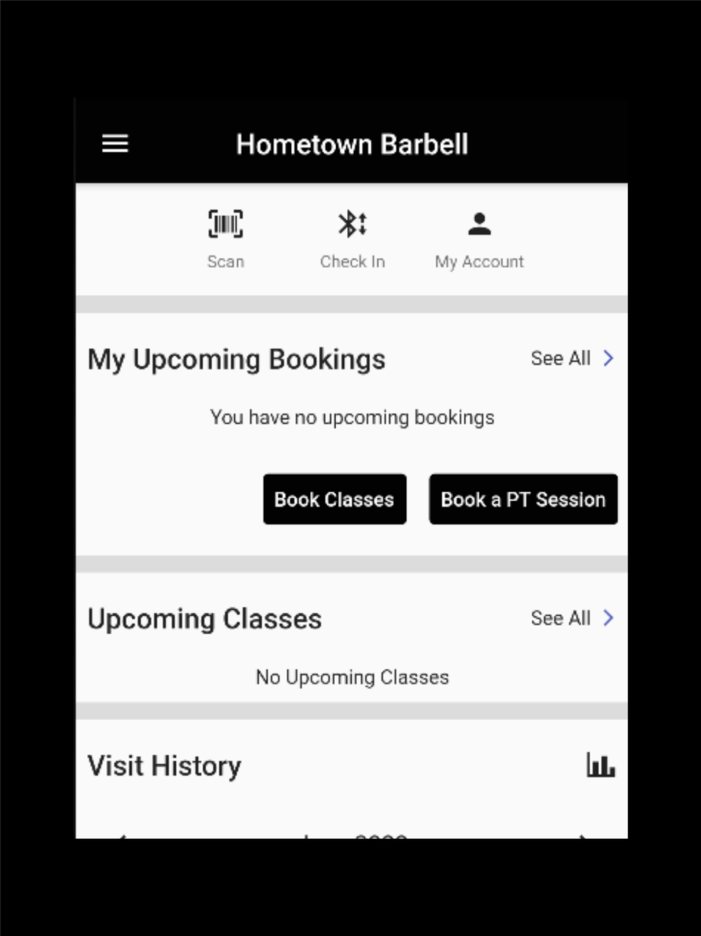 Hometown Barbell Membership portal will allow users to receive gym updates, check in for access, manage their membership, manage payment options, and check in guests.
