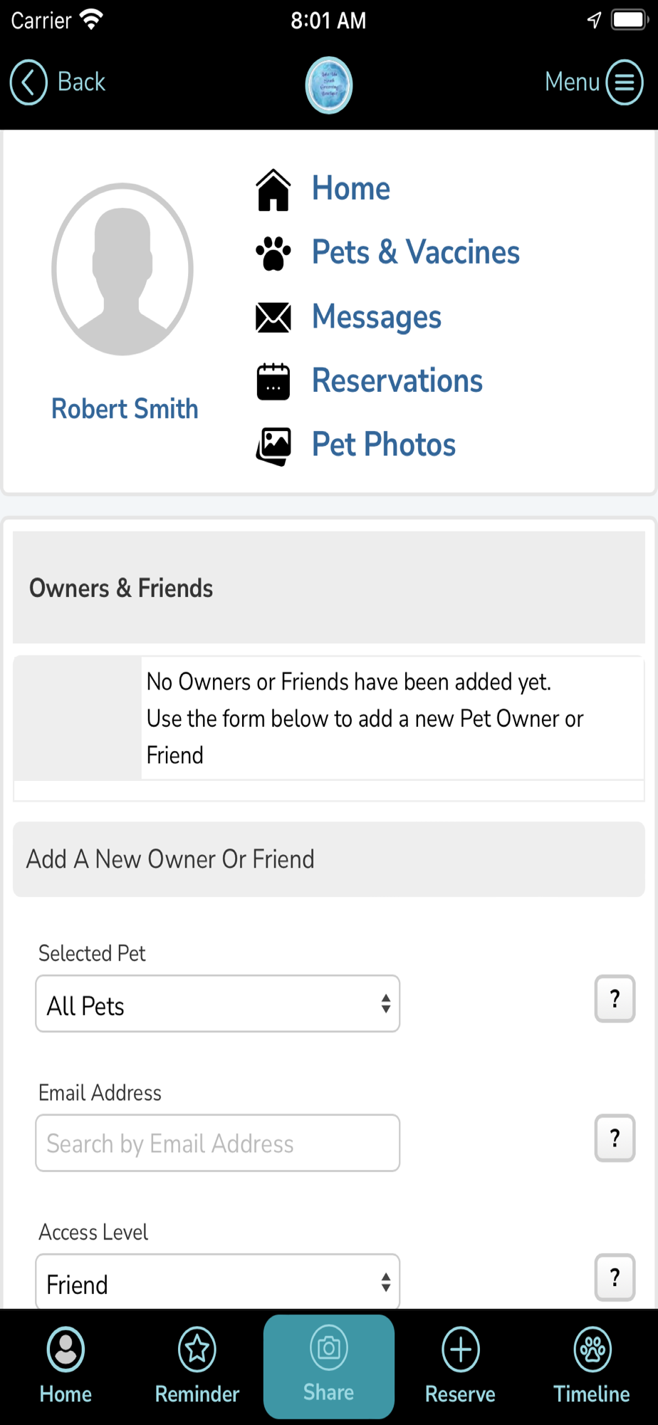 The Lake Ida South Grooming App enables users to make reservations, purchase package credits, see and pay invoices, message with Lake Ida South Grooming, see photos of their pets, and more. Employees of Lake Ida South Grooming are able to manage the business and connect with customers. This app is made specifically for the customers and employees of Lake Ida South Grooming.