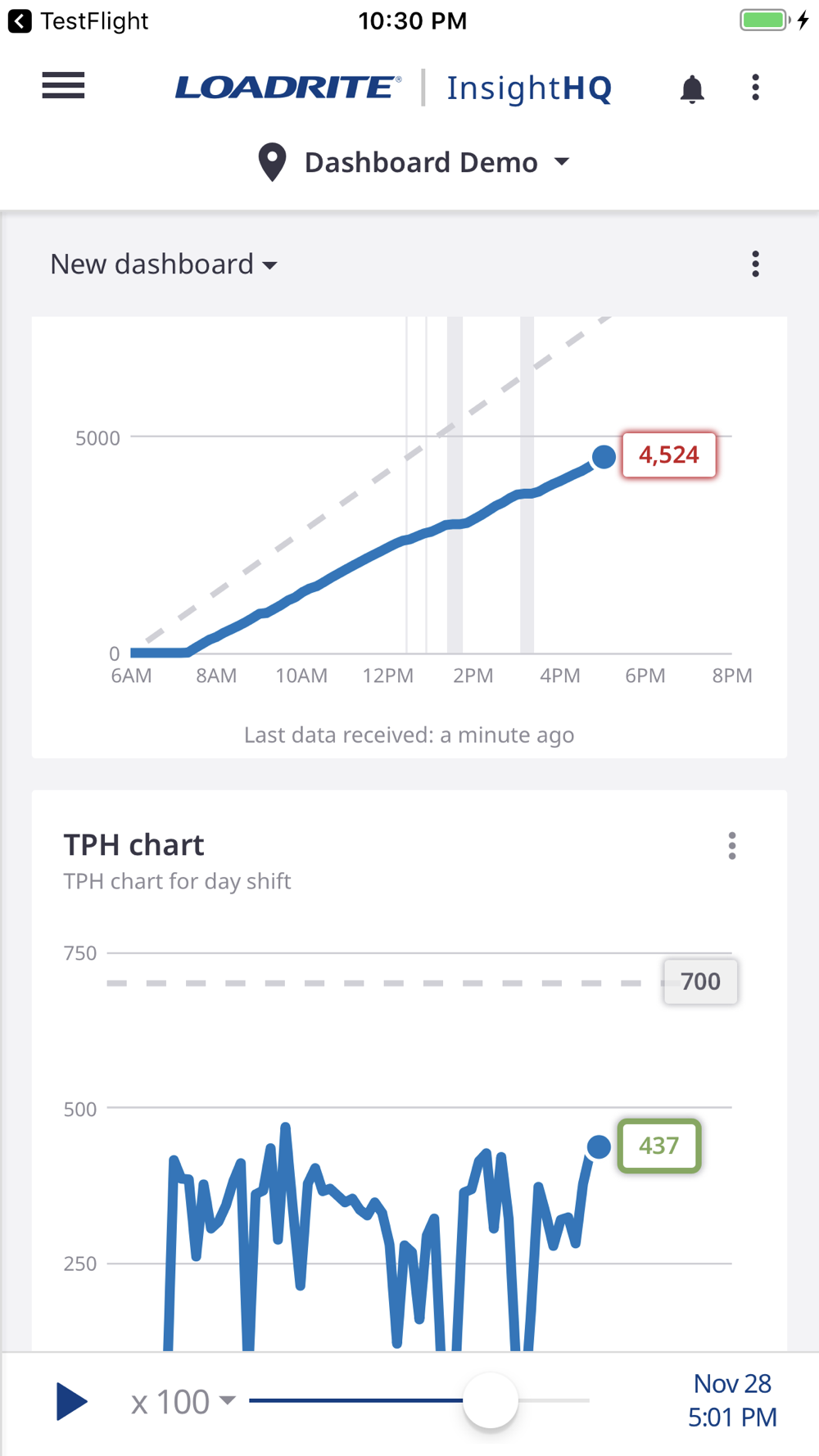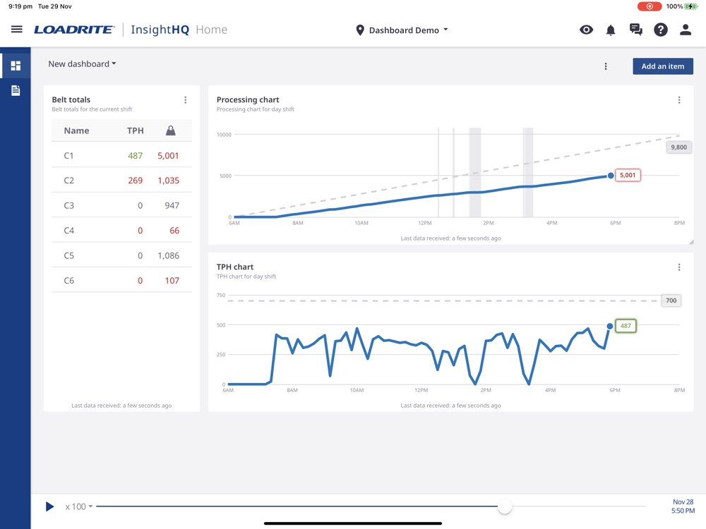 Loadrite InsightHQ lets you create your personal dashboard from the operational data created by the machinery on your site. Having this dashboard available on your mobile device means you can stay connected with your site operations and when there is a problem or you need to do something differently, you'll be able to make informed decisions about what actions to take.