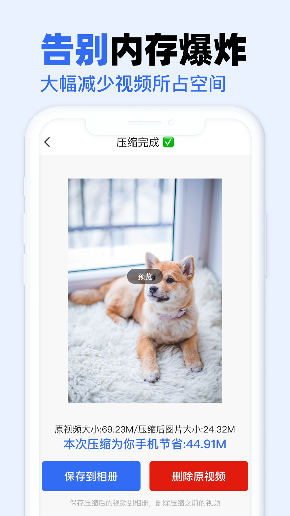 无损视频压缩可以简单方便地压缩视频,大幅度减少视频文件大小,这个应用可以帮助你压缩文件,减少文件大小,节约设备内存。