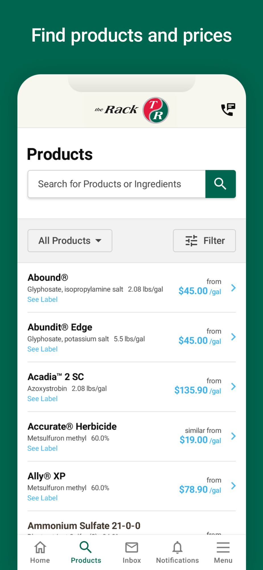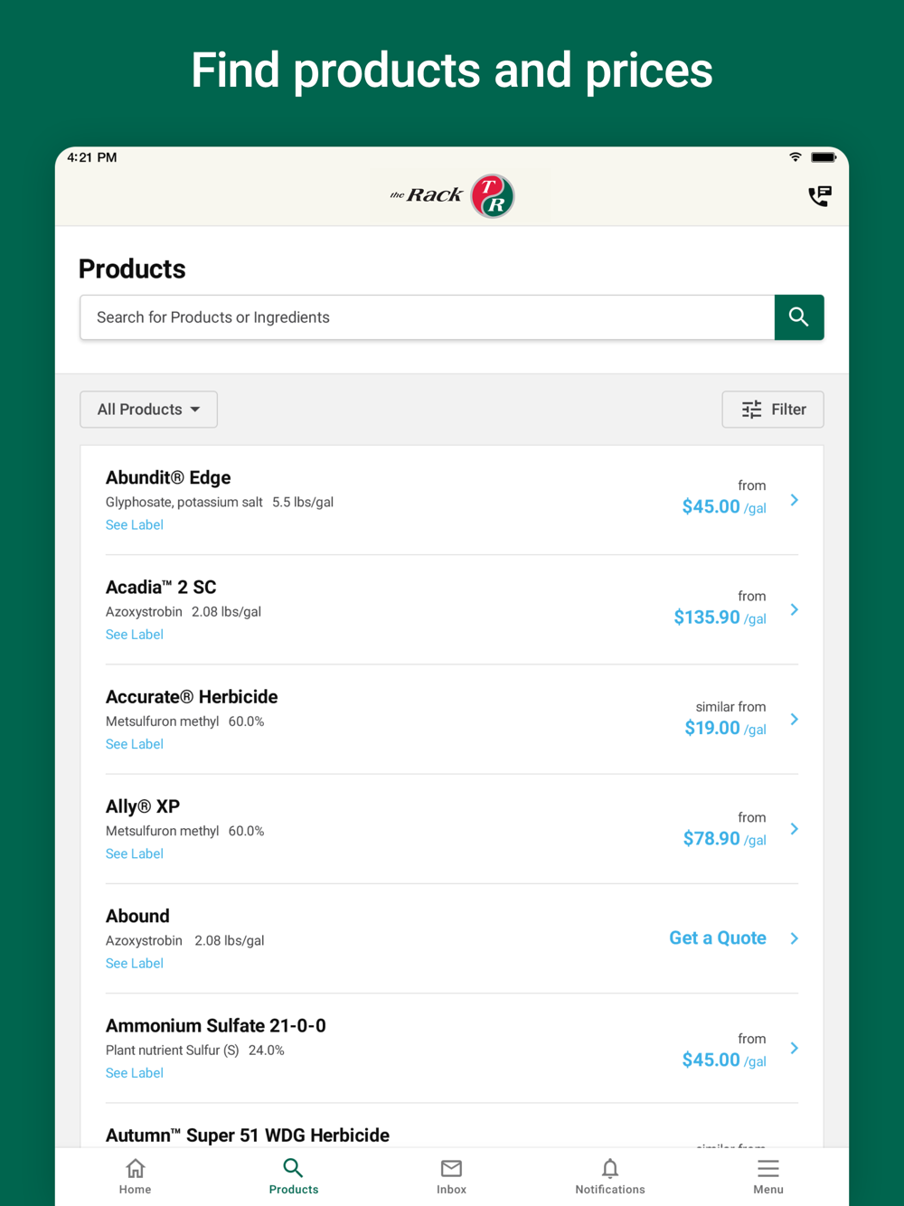 • Looking for a specific product? Search by product name or ingredient to find exactly what you need. View label information or get pricing information.