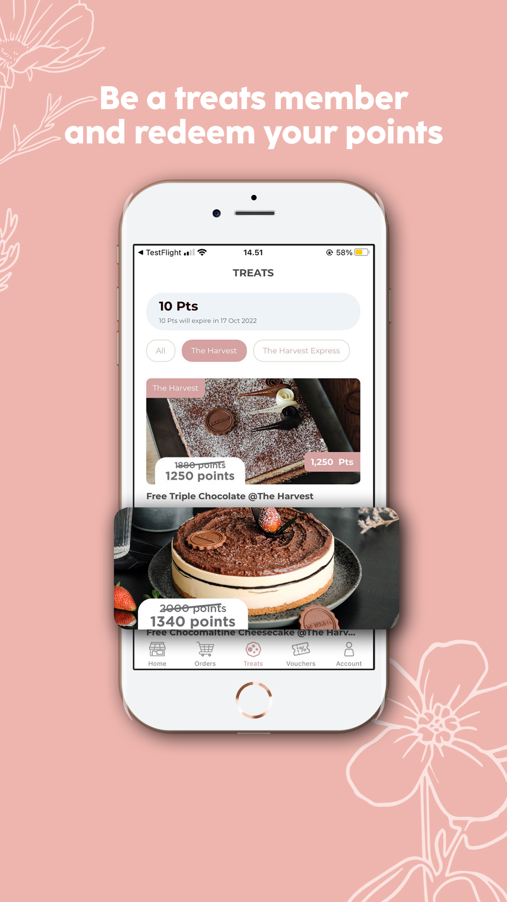 The app is filled with delightful offers specially tailored for Cake Lovers. But first thing first, you have to join ‘The Harvest Treats Member’ to enjoy our offers! Get special points and redeem with selected vouchers.