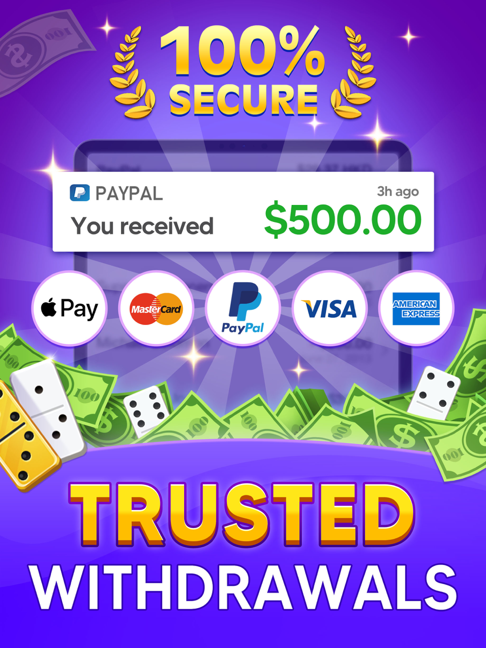Play Dominoes Cash, Grasp Real Money now!Join skill-based Classic Dominos with Cash & Real Prizes awarding! Match with worldwide players & beat them like a Pro! Fast-paced matches & competitions on mobile anytime & anywhere, practice skills in freeroll tournaments to win Big Prizes!Key Features:CA$H AWARDING Awesome way to make money! Best Cash App & Money Game ever, win tiles to pay bills!