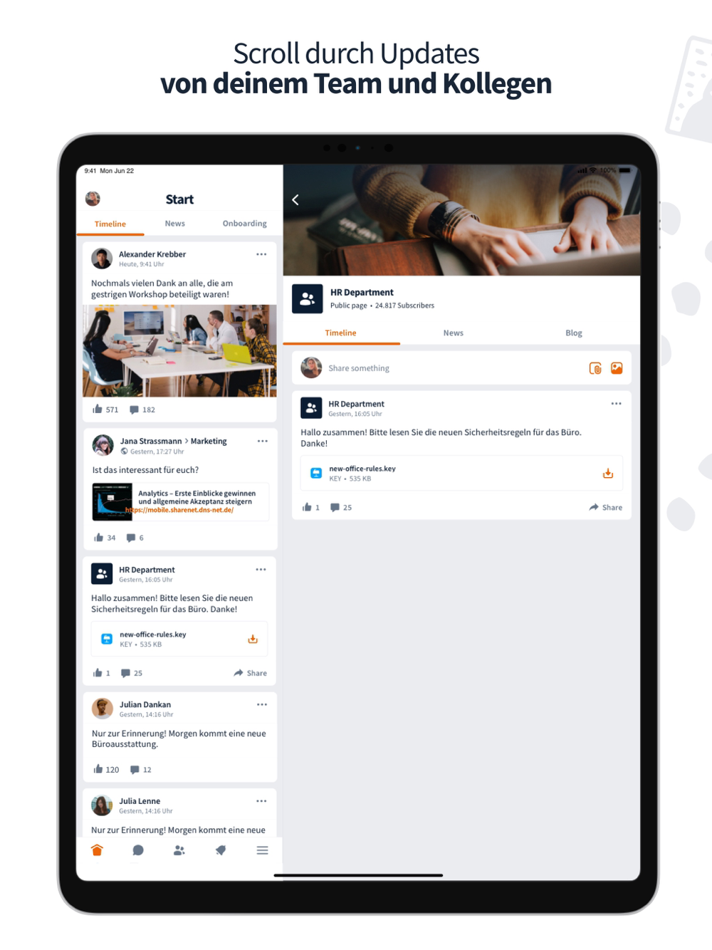 SHARENET is the app for all DNS:NET employees and your mobile DNS:NET intranet in pocket format that is perfect for on the go. Get the latest company news, share important documents using folder structures as a central filing system and chat with your colleagues in real time.