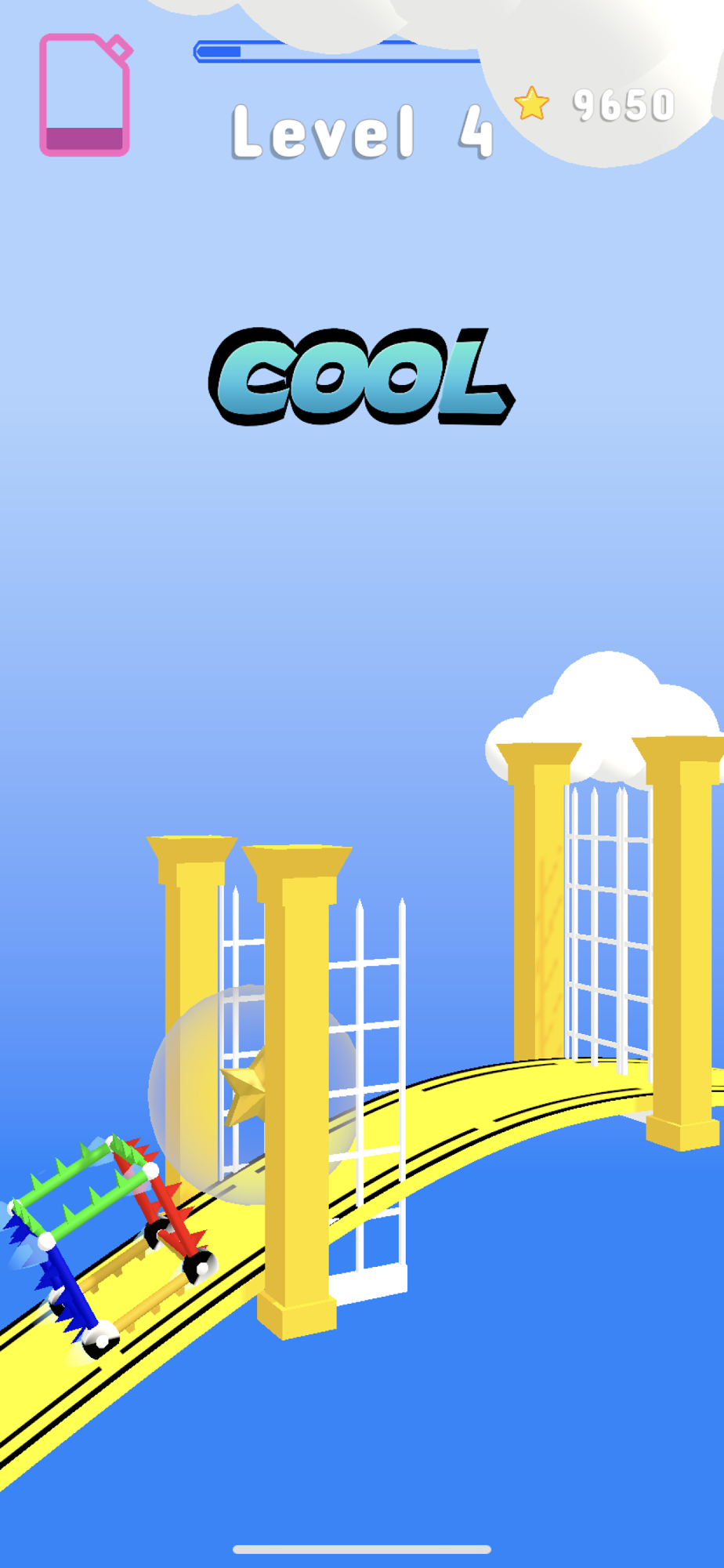 There is a lot of fun on the way of the colored square, trampolines and soap bubbles with stars that you can also pop.