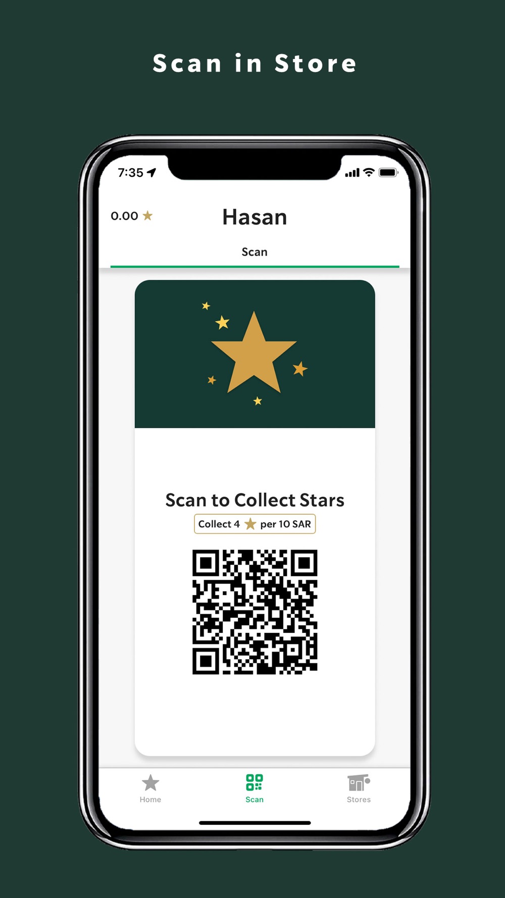 • When in store, Scan the QR code on your app every time you make a purchase at any participating Starbucks store in KSA to collect Stars; you get 4 Stars for every 10 SAR spent!