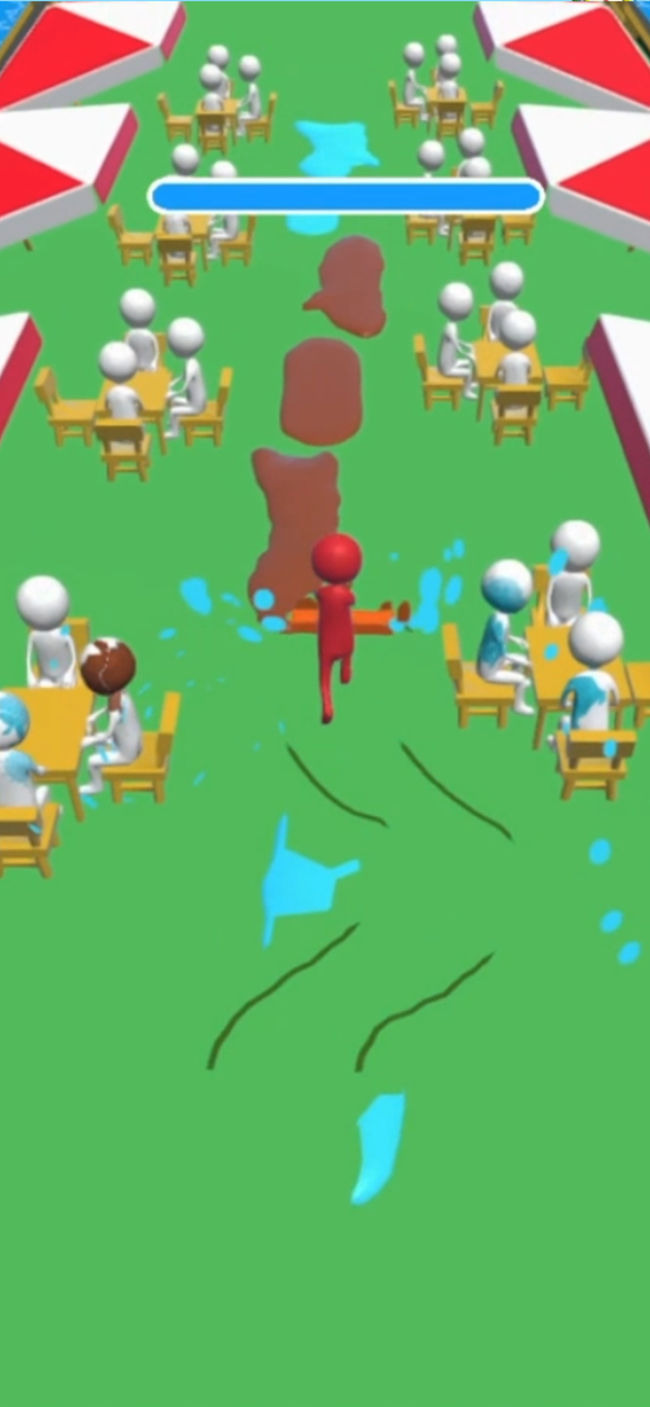 Move your mop to splash paddles onto pedestrians on your way & run for your life!