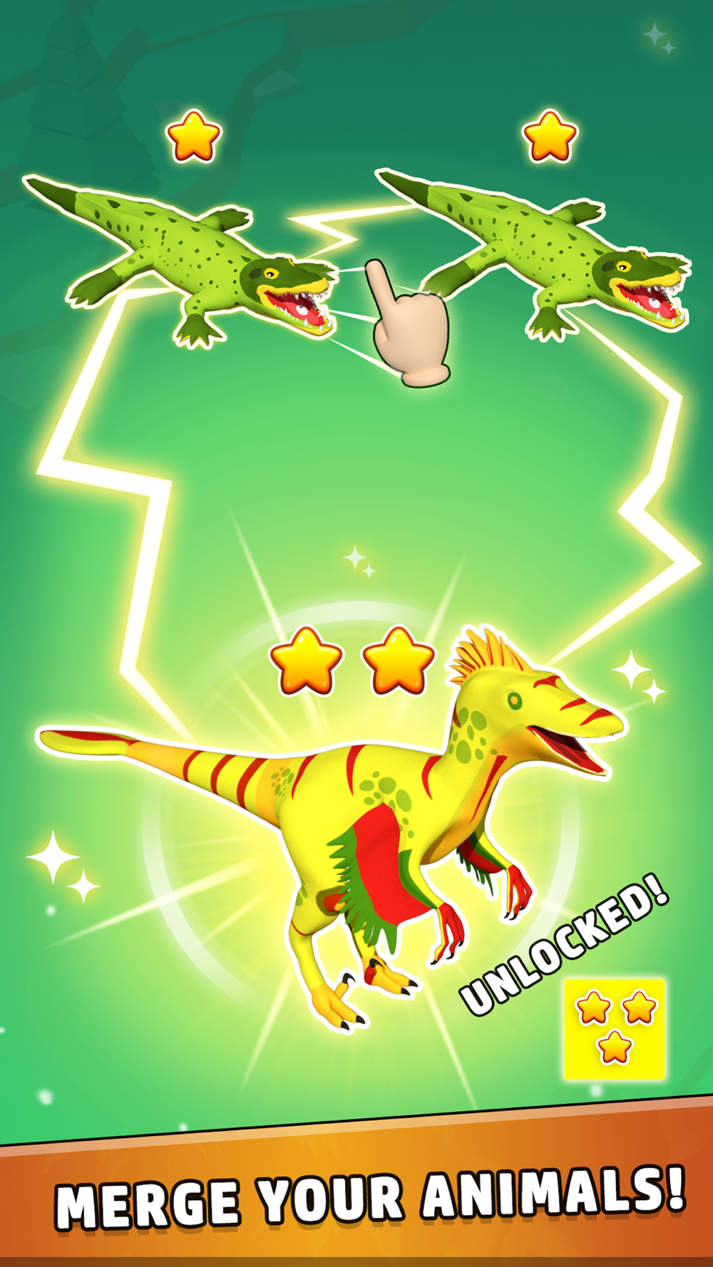 Merge Animal Dinosaur Fight is an interactive and strategy based game to merge the troops. Merge your animals and unlock new cards and grow the family to win the monsters battle. Use your brain skills to merge the best army in mutant ultimate game. Can you go up to level 100?
