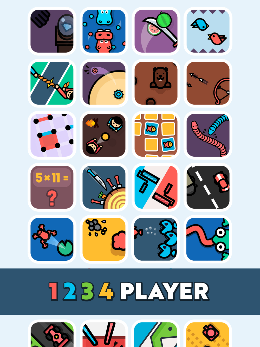 All these games in one app for 1 2 3 4 players. Get the collection for free now, and enjoy local multiplayer on one device / one phone / one tablet, and bring the fun to the party!