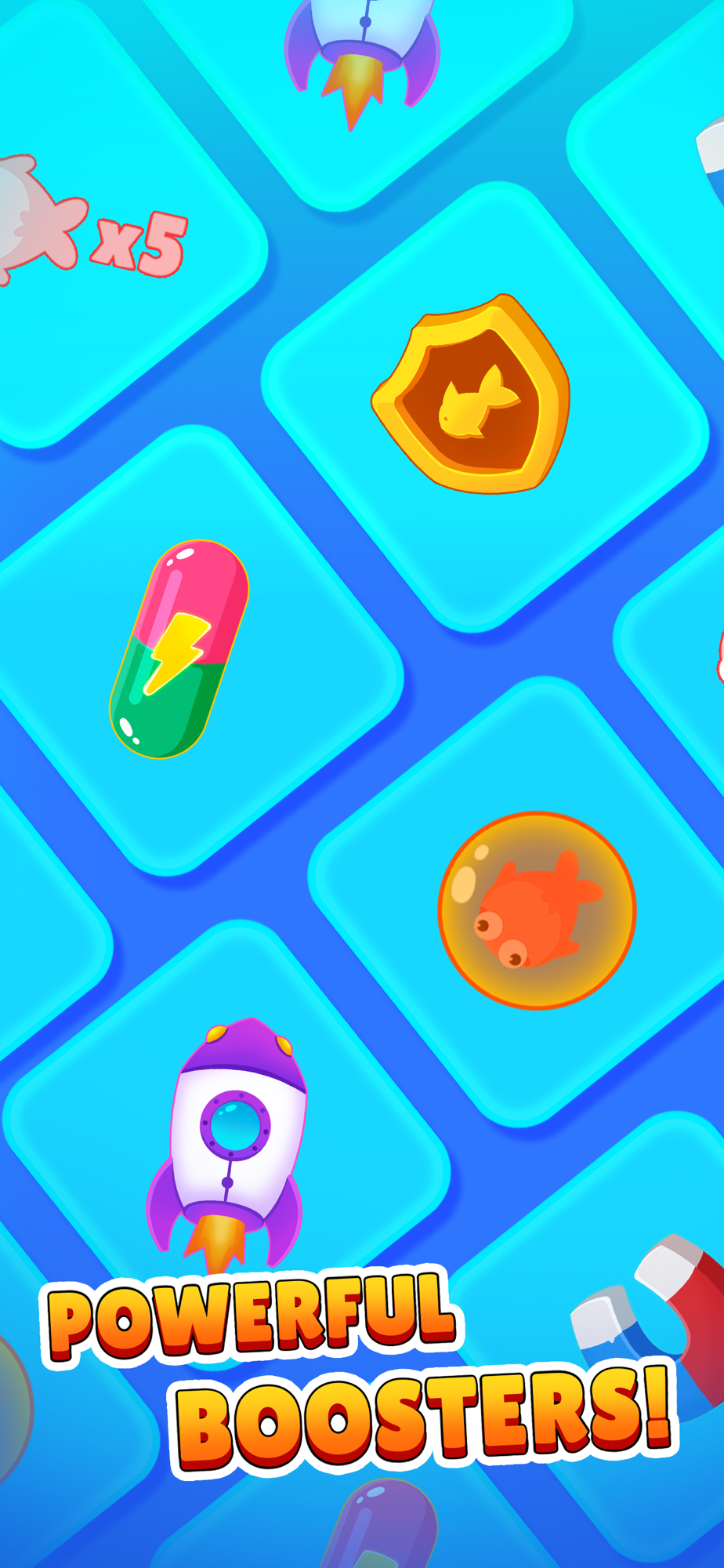 - Many kinds of powerful booster: speedup, get start, magnet, etc