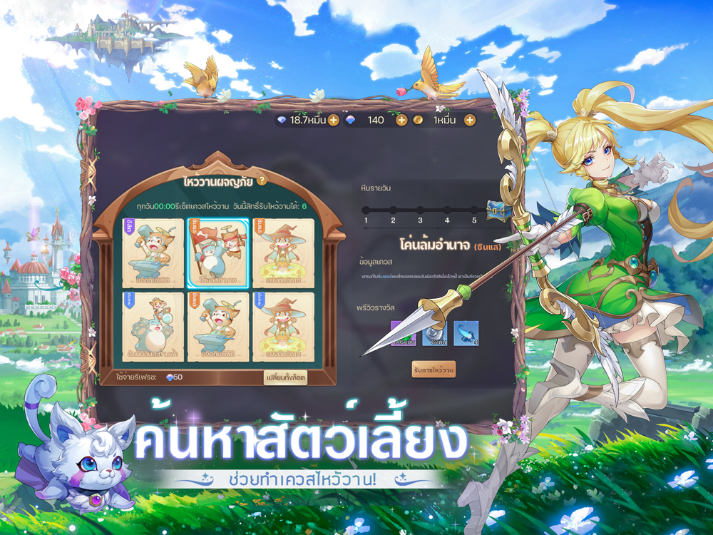 สัตว์เลี้ยงหลากหลายชนิด เช่น มังกรไฟน้อย, วีเซิลหิมะและสายลับแมว รอคุณจับและฝึกอบรม~ พวกมันไม่เพียงแต่ดูน่ารักเท่านั้น แต่ยังสามารถใช้สกิลช่วยคุณต่อสู้ได้ด้วย ระบบสัตว์เลี้ยงไหว้วานที่ไม่เหมือนใคร สัตว์เลี้ยงของคุณกลายเป็นพนักงานขยัน! นำรางวัลมากมายมาให้คุณ! สัตว์เลี้ยงที่สามารถต่อสู้และหาเงินได้นั้น ใคร ๆ ก็ชอบ~