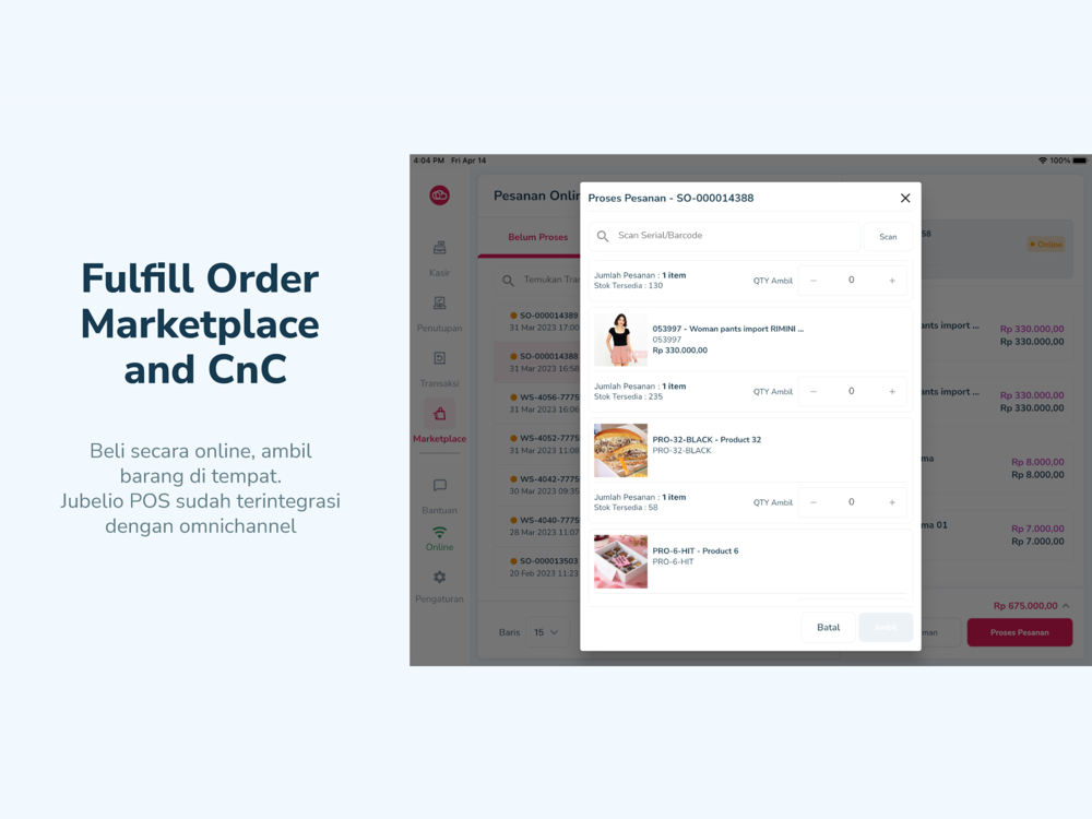 Point of Sales yang dirancang khusus untuk membantu UMKM yang berjualan Online dan Offline menggunakan Jubelio Omnichannel.