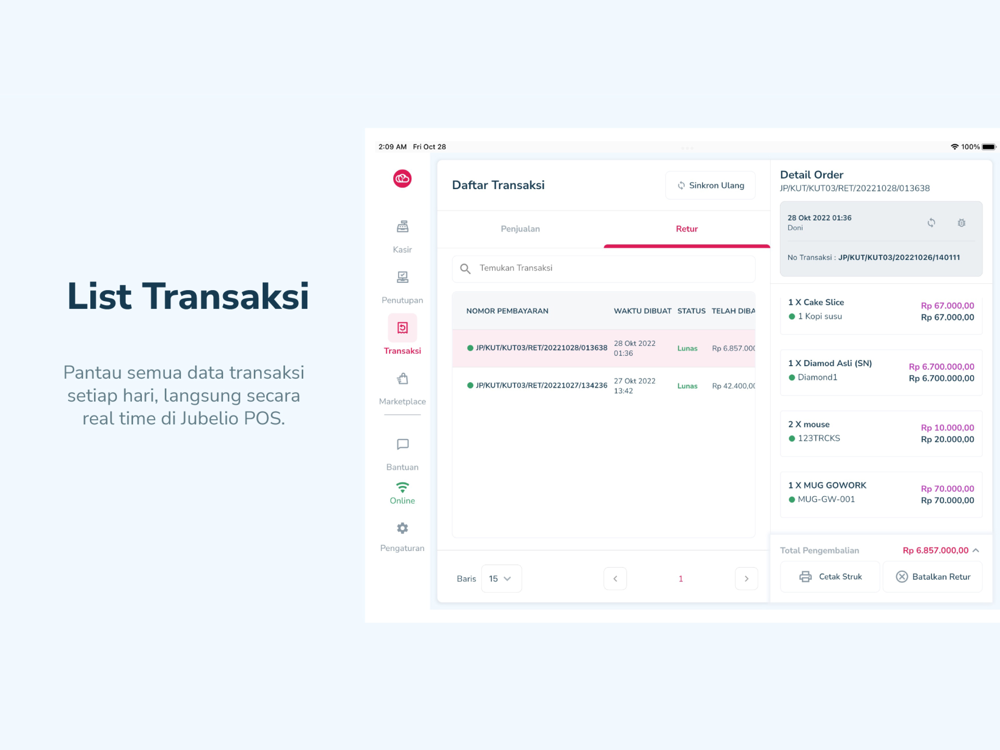 Dapatkan kemudahan bertransaksi dengan didukung oleh Jubelio POS dan pastikan seluruh transaksi Offline anda berada pada 1 Aplikasi.