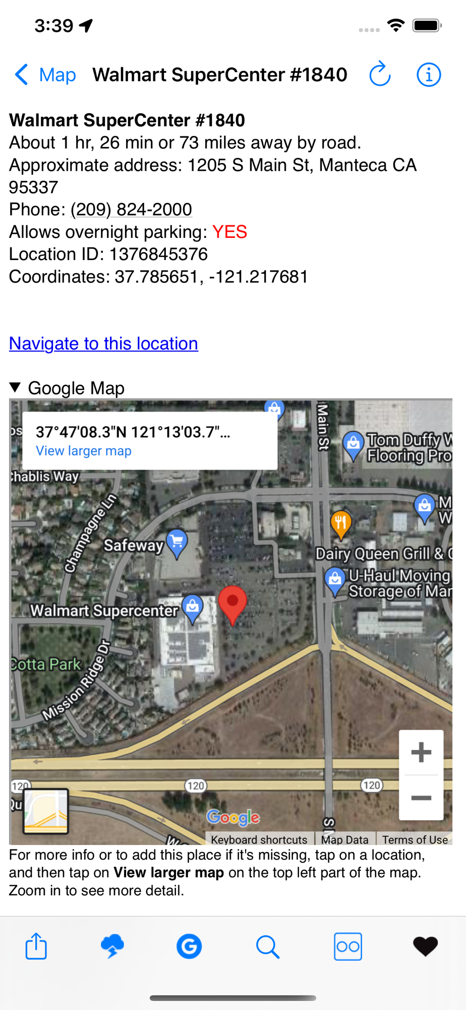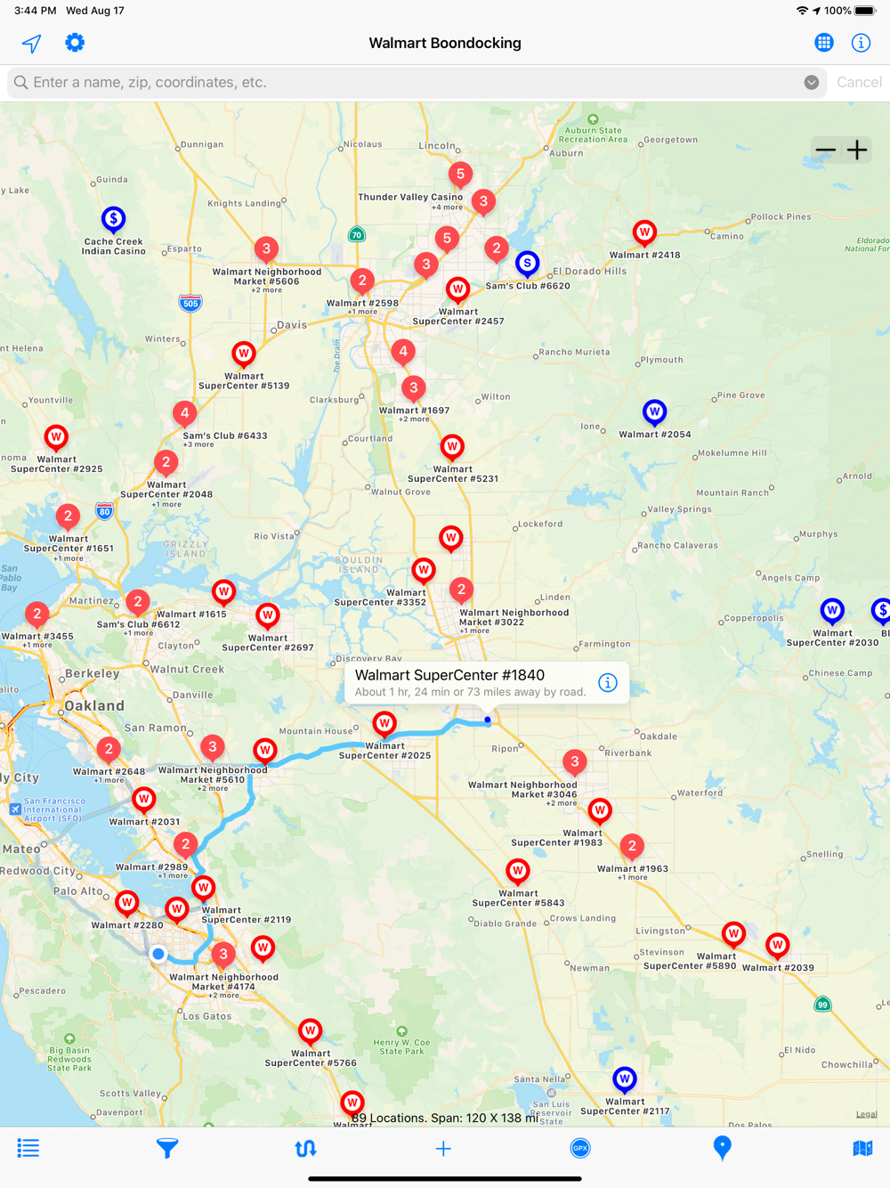 Bonus! Also included along with Walmart locations are Sam’s Clubs, Cabela’s Stores, and RV-Friendly casinos for a total of over 6,000 locations!