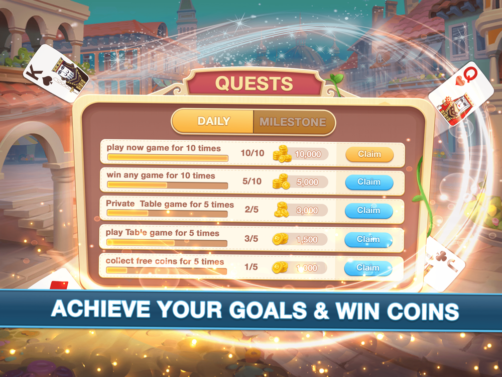 -Quests are available with existing deals to get an extra bonus coin with the bluff game.