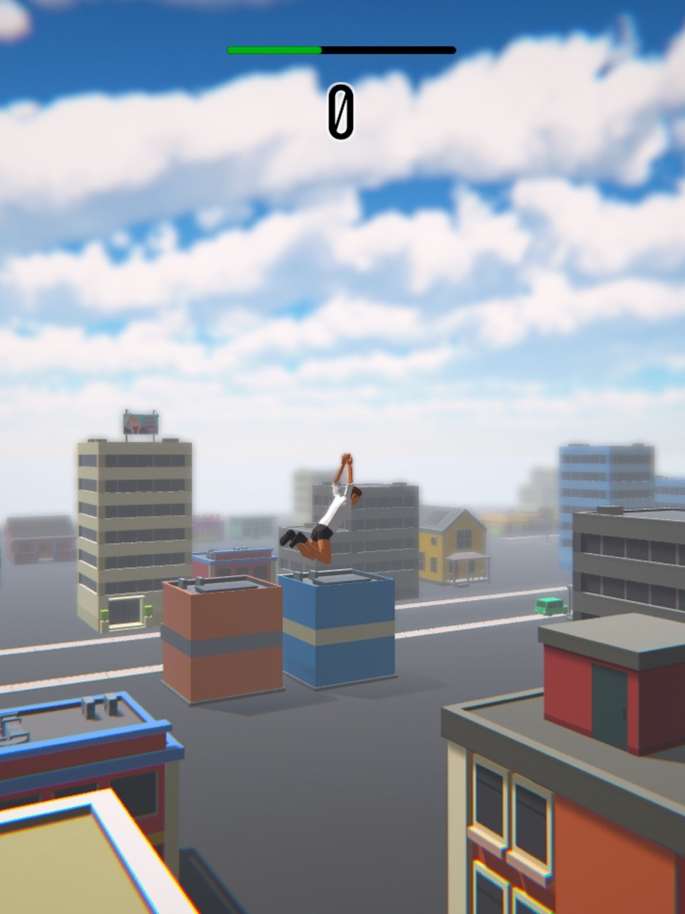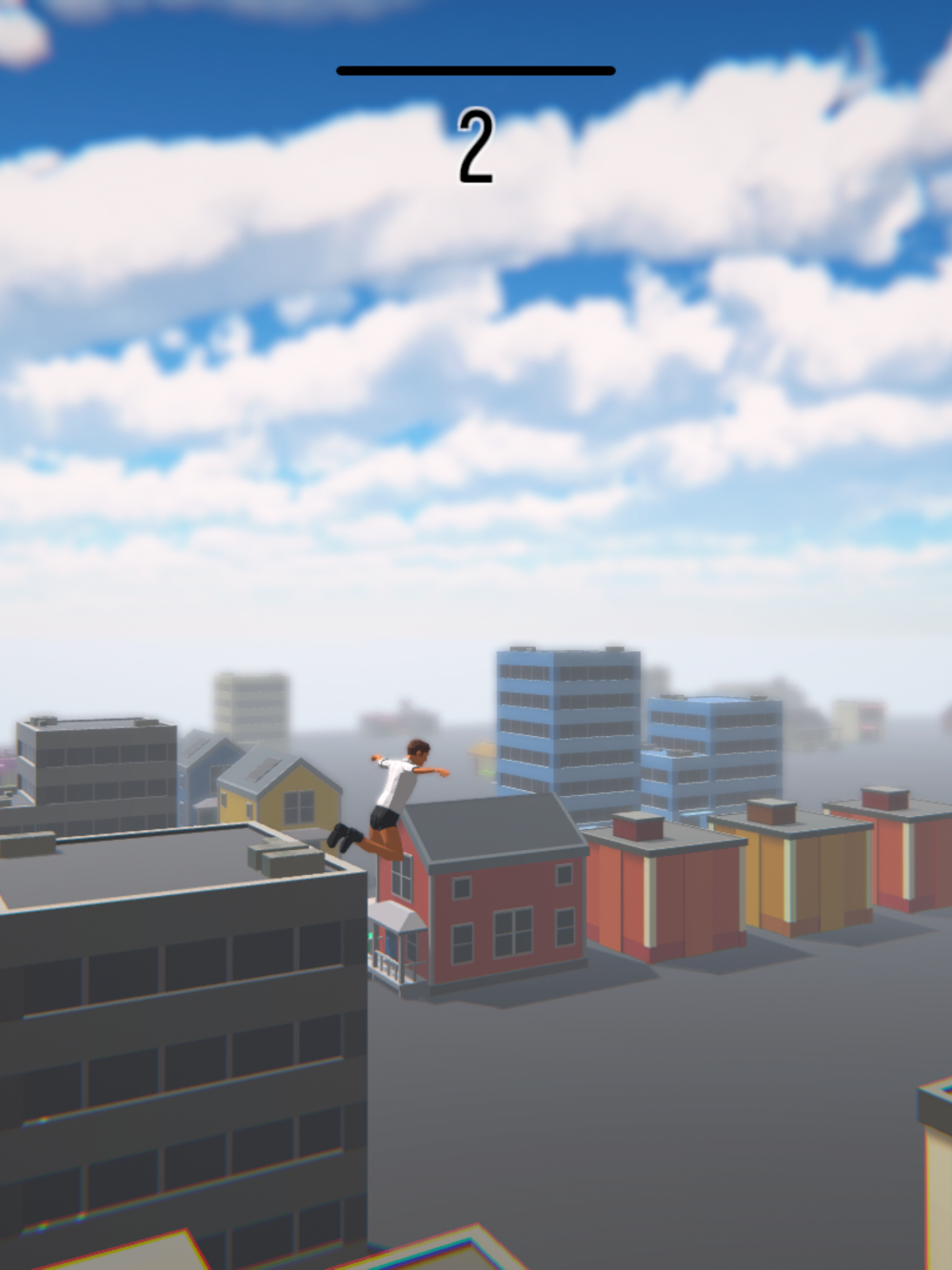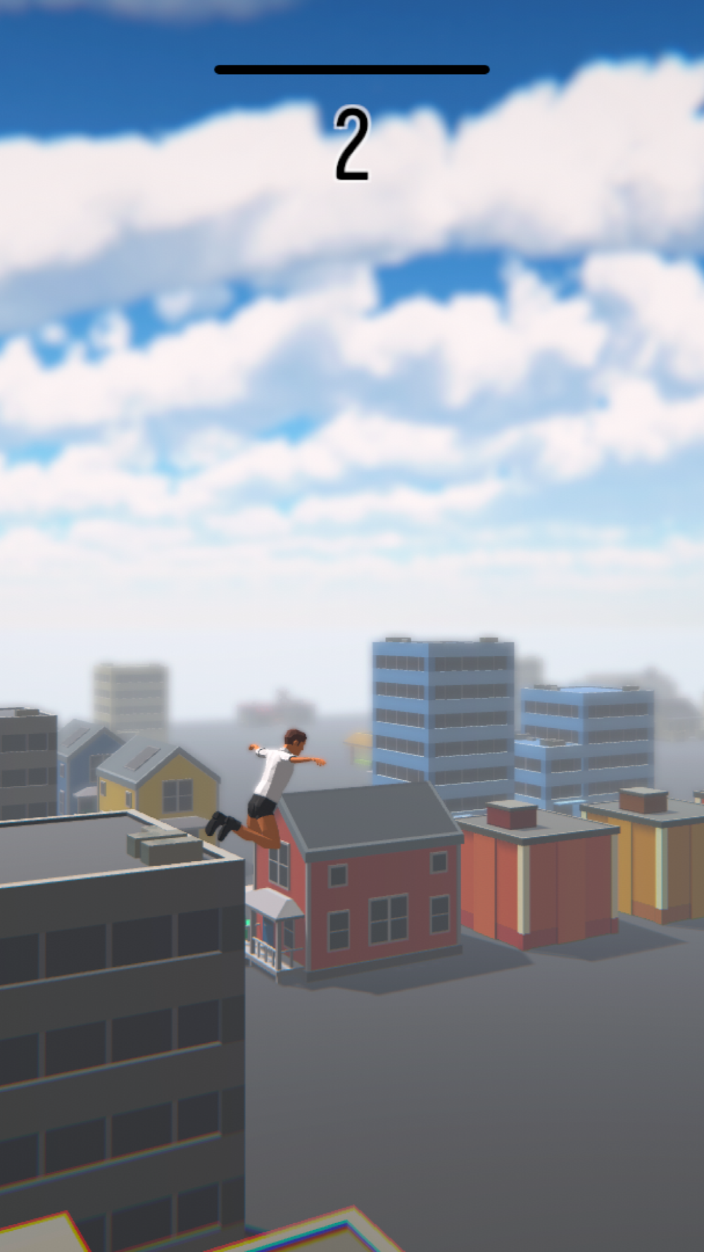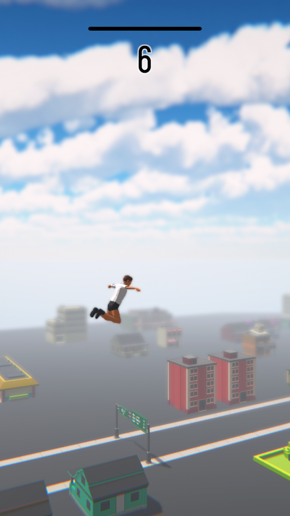 Clear one level for every roof you pass, but watch out for a flying enemy chasing you.